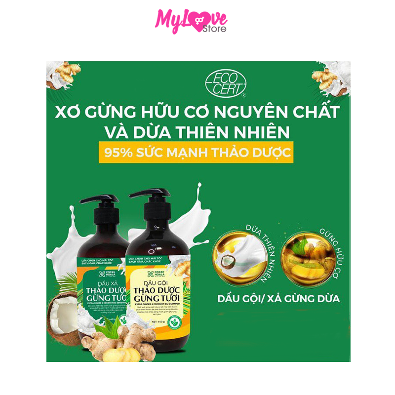 Combo Dầu Gội Xả Gừng Dừa Hữu Cơ Cocayhoala Ngăn Rụng Tóc Kích Thích Mọc Tóc - Giảm Gàu 440g + Tặng Gel Tẩy Da Chết Cafe Cocayhoala Sáng Da Sạch Mụn - Tăng Hấp Thụ Dưỡng Chất của Da - Chiết Xuất Cafe, Tuýp 100g mylovestore