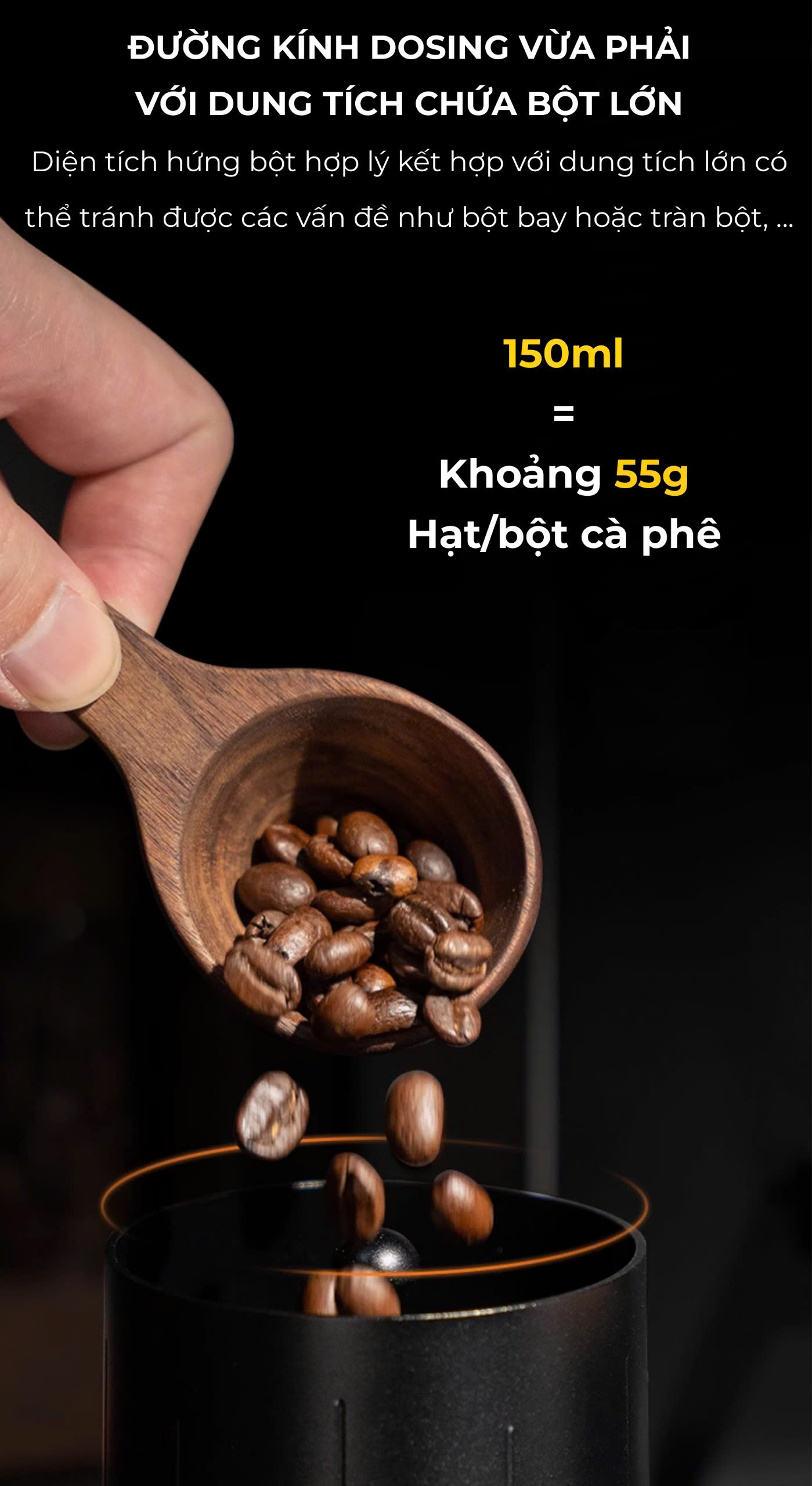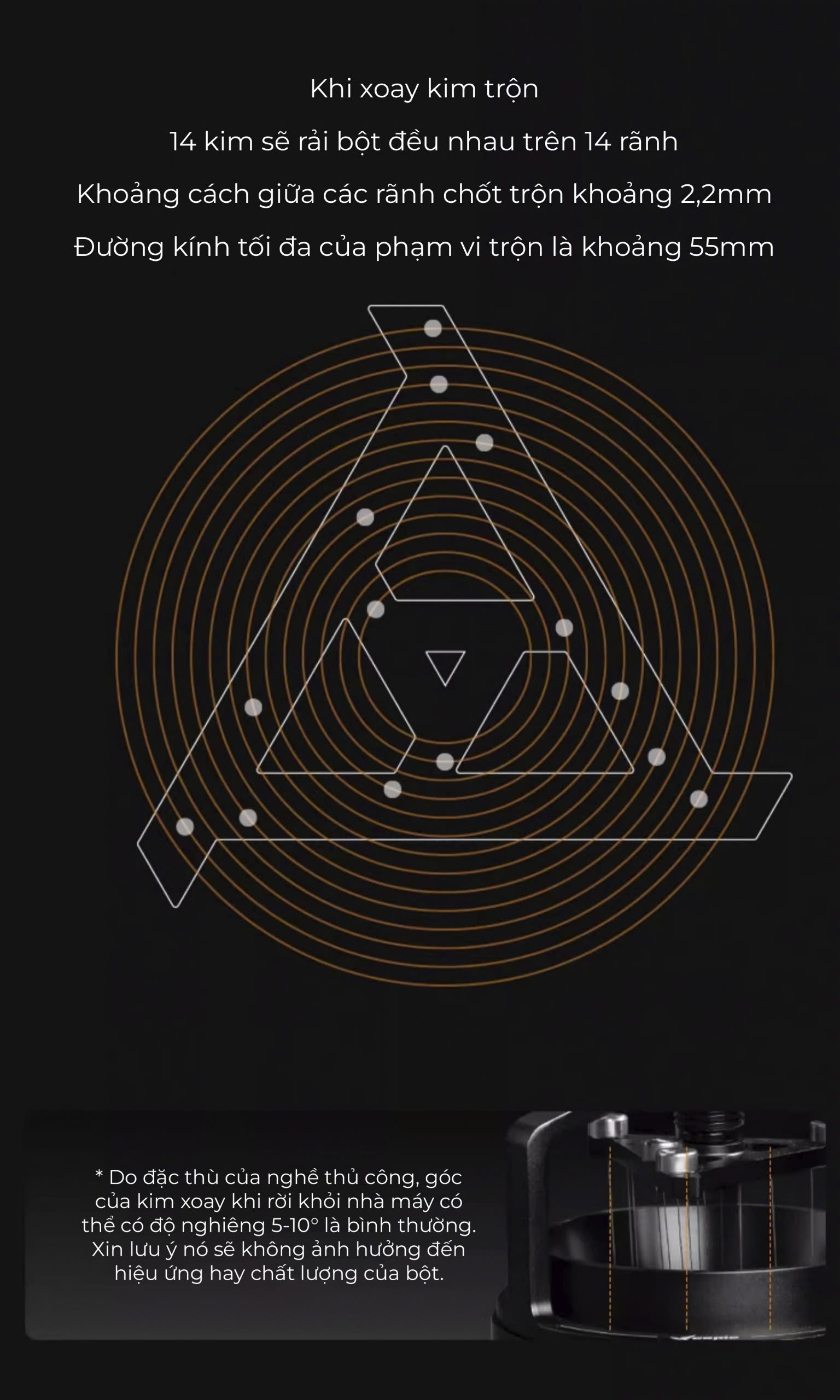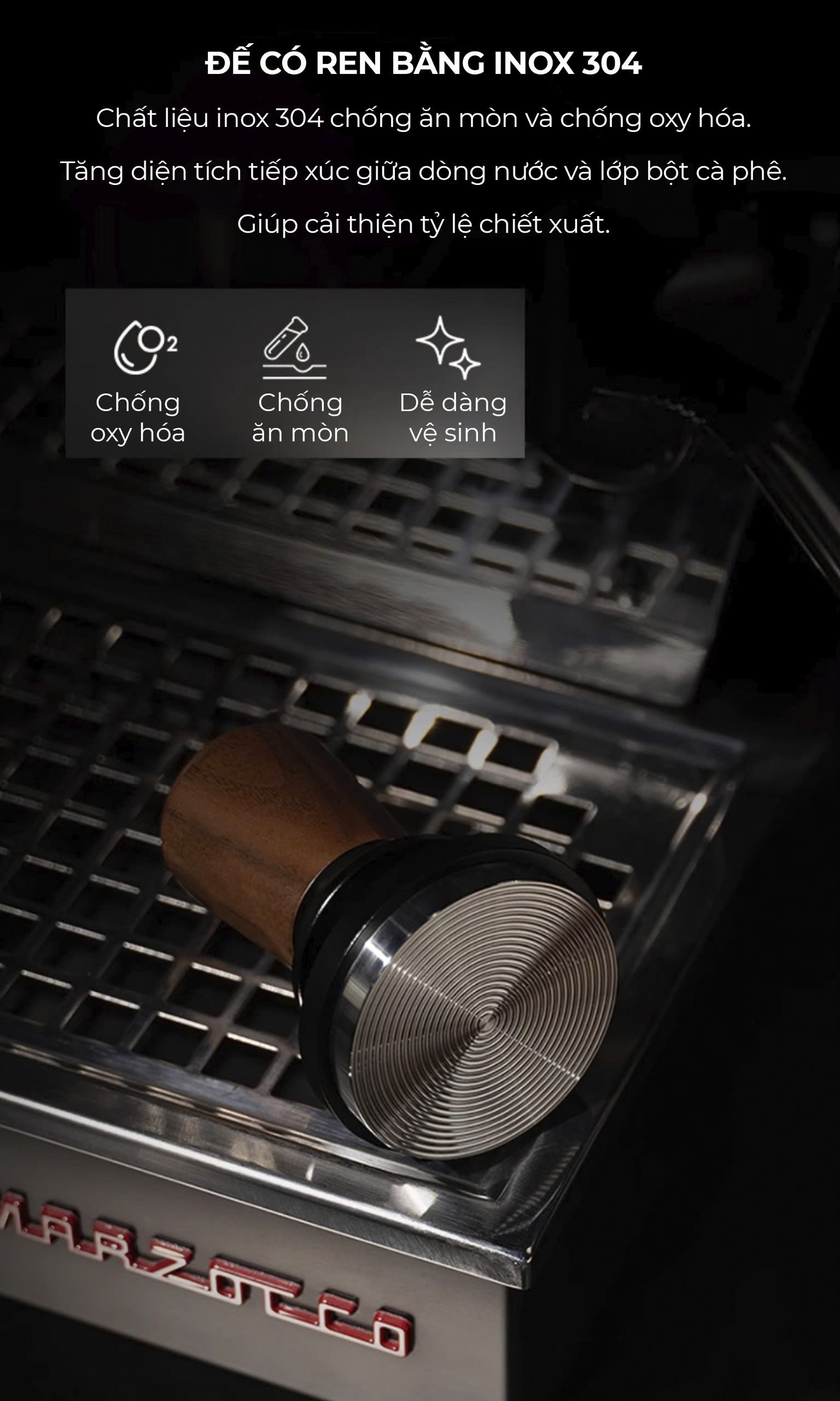 ️ Điều chỉnh độ sâu vô cấp, linh hoạt cho từng loại cà phê.