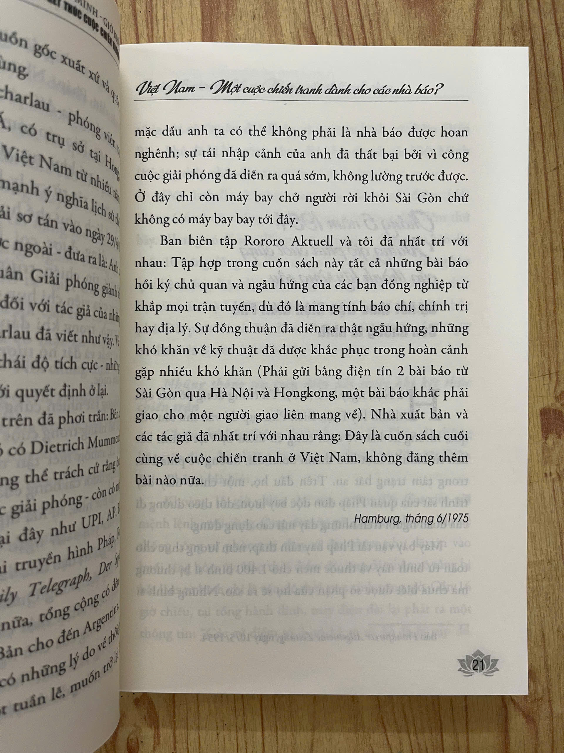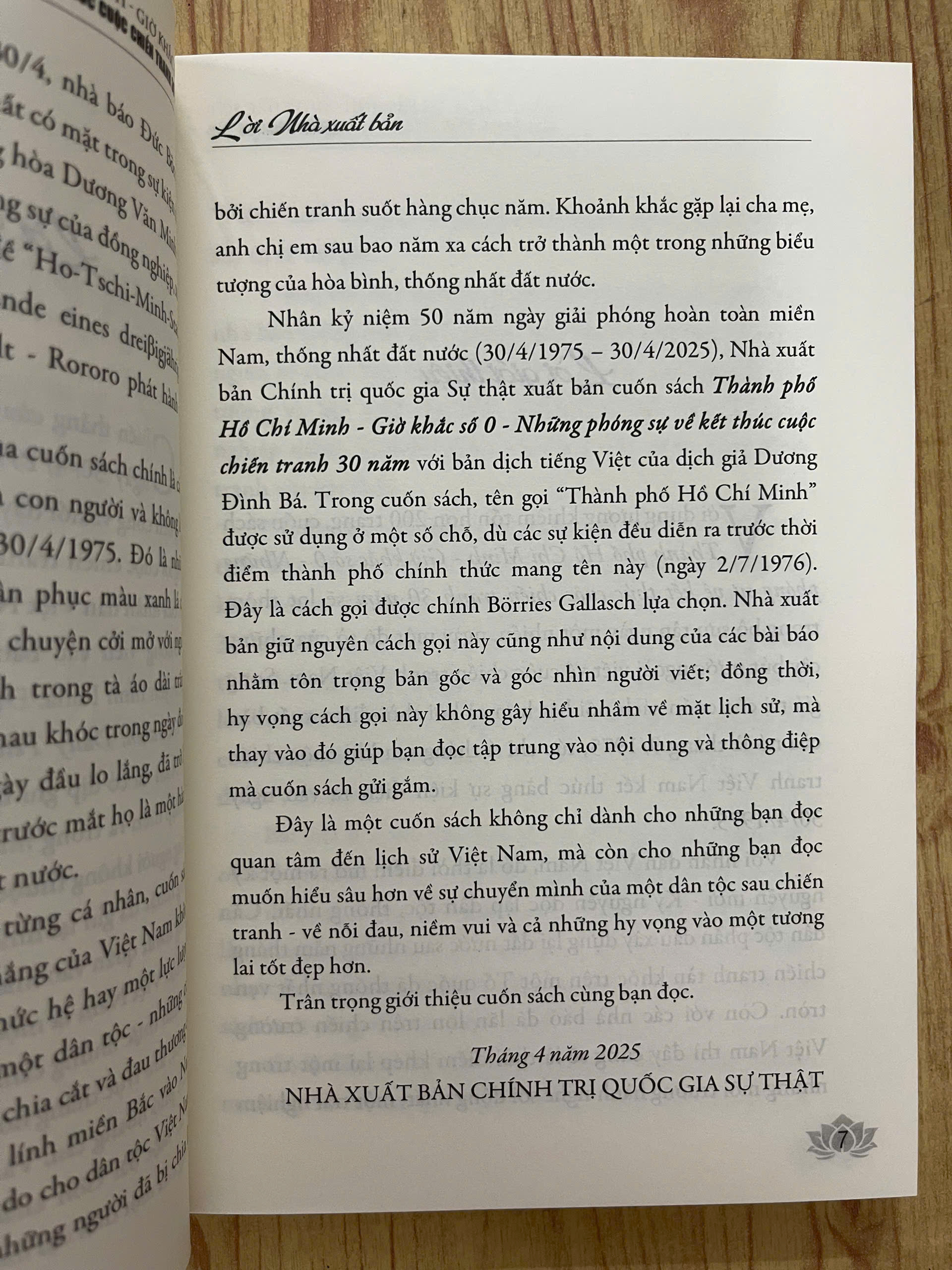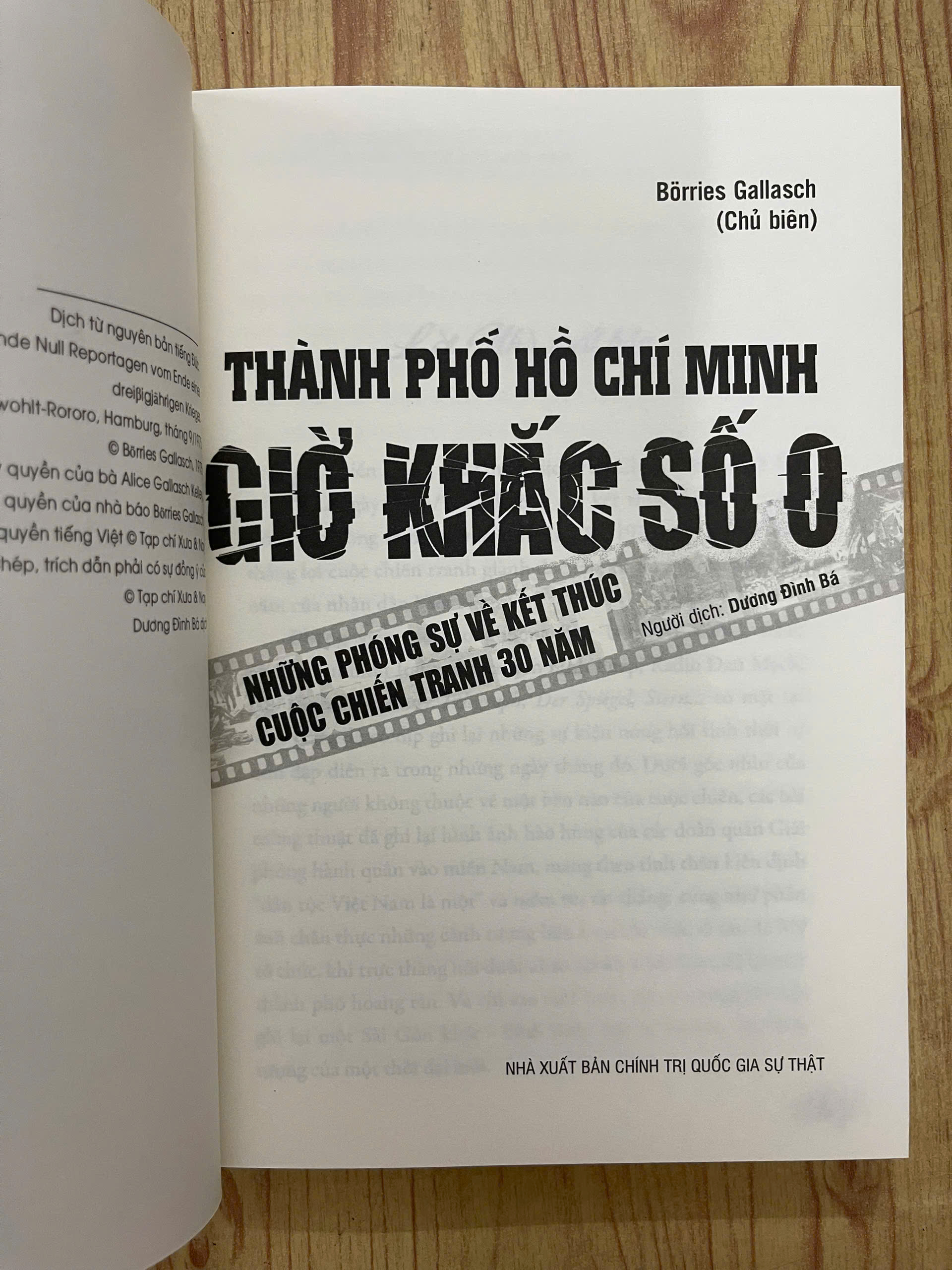 - THÀNH PHỐ HỒ CHÍ MINH - GIỜ KHẮC SỐ 0 - Những Phóng Sự Về Kết Thúc Cuộc Chiến Tranh 30 Năm (Borries Gallasch) I.NỘI DUNG Cuốn sách “Thành phố Hồ Chí Minh - Giờ khắc số 0 - Những phóng sự về kết thúc cuộc chiến tranh 30 năm” gồm những bài tường thuật của nhiều nhà báo phương Tây - những người đã trực tiếp có mặt tại Việt Nam trong những ngày tháng lịch sử. Họ chứng kiến các đoàn quân Giải phóng hành quân vào miền Nam, mang theo tinh thần kiên định “dân tộc Việt Nam là một” và niềm tin tất thắng. Họ chứng kiến những cảnh tượng hỗn loạn của cuộc di tản do Mỹ tổ chức, khi trực thăng nối đuôi nhau rời khỏi Sài Gòn, để lại một thành phố hoang tàn. Và chỉ sau một tuần, họ lại nhìn thấy một Sài Gòn khác - bình tĩnh, trật tự và tràn đầy biểu tượng của một thời đại mới. Một trong những điểm đặc sắc của cuốn sách chính là cách những nhà báo mô tả sự thay đổi của con người và không khí trong thành phố trước và sau ngày 30/4/1975. Đó là những chiến sĩ Quân Giải phóng với bộ quân phục màu xanh lá cây cùng đôi dép cao su Hồ Chí Minh trò chuyện cởi mở với người dân. Đó là hình ảnh những học sinh trong tà áo dài trắng, những bà mẹ, những người thân ôm nhau khóc trong ngày đoàn tụ. Người dân Sài Gòn, sau những ngày đầu lo lắng, đã trở lại cuộc sống thường nhật, dẫu biết rằng trước mắt họ là một hành trình đầy thách thức để xây dựng lại đất nước. Bên cạnh những câu chuyện của từng cá nhân, cuốn sách phản ánh một sự thật sâu sắc: Chiến thắng của Việt Nam không chỉ đơn thuần là thắng lợi của một ý thức hệ hay một lực lượng quân sự, mà đó là chiến thắng của cả một dân tộc - những con người đã chịu đựng quá nhiều mất mát, chia cắt và đau thương để giành lại độc lập, tự do. Những người lính miền Bắc vào Nam không chỉ giành lại hòa bình, độc lập, tự do cho dân tộc Việt Nam, mà còn tìm lại gia đình, người thân - những người đã bị chia lìa bởi chiến tranh suốt hàng chục năm. Khoảnh khắc gặp lại cha mẹ, anh chị em sau bao năm xa cách trở thành một trong những biểu tượng của hòa bình, thống nhất đất nước. Với góc nhìn của những người ngoài cuộc, nhưng lại có cơ hội chứng kiến cận cảnh những giờ phút lịch sử, “Thành phố Hồ Chí Minh - Giờ khắc số 0 - Những phóng sự về kết thúc cuộc chiến tranh 30 năm” là một cuốn sách tư liệu quý giá, mang đậm hơi thở của thời đại. Đây là một cuốn sách không chỉ dành cho những bạn đọc quan tâm đến lịch sử Việt Nam, mà còn cho những bạn đọc muốn hiểu sâu hơn về sự chuyển mình của một dân tộc sau chiến tranh - về nỗi đau, niềm vui và cả những hy vọng vào một tương lai tốt đẹp hơn.