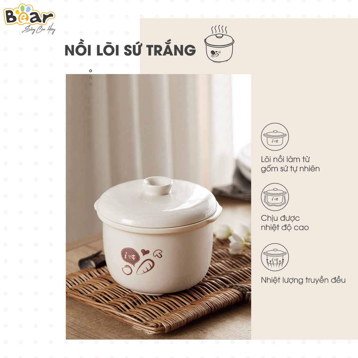 VỪA LÀ NỒI NINH HẦM CHÁO CÁCH THUỶ VỪA LÀ NỒI HẤP Thiết kế trang nhã, chất liệu cao cấp Nồi hầm điện Bear thiết kế đơn giản, trang trọng. Nhựa PP và gốm