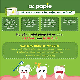 - Dược liệu hữu cơ, không xà phòng, không cay mắt bé, phù hợp với pH của da trẻ Gạc răng miệng Dr Papie THÔNG TIN SẢN PHẨM: