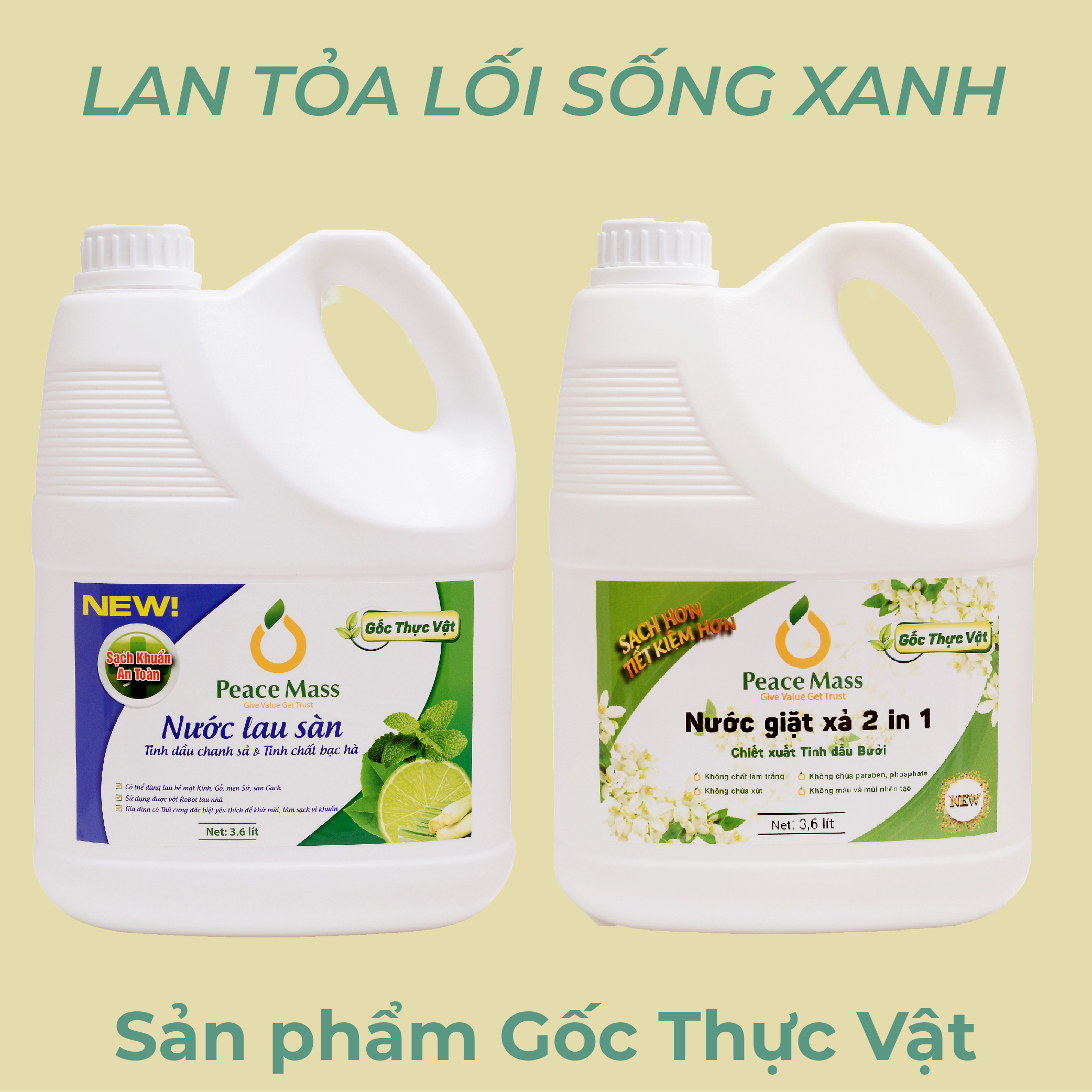 ✨Combo Sản Phẩm Gốc Thực Vật NGB4 Peace Mass Nước Giặt Xả 2 in 1 3.6 l + Nước Lau Sàn TD Chanh Sả -Bạc Hà 3.6l (Thuộc nhóm Sản phẩm Lành tính / Sinh học)