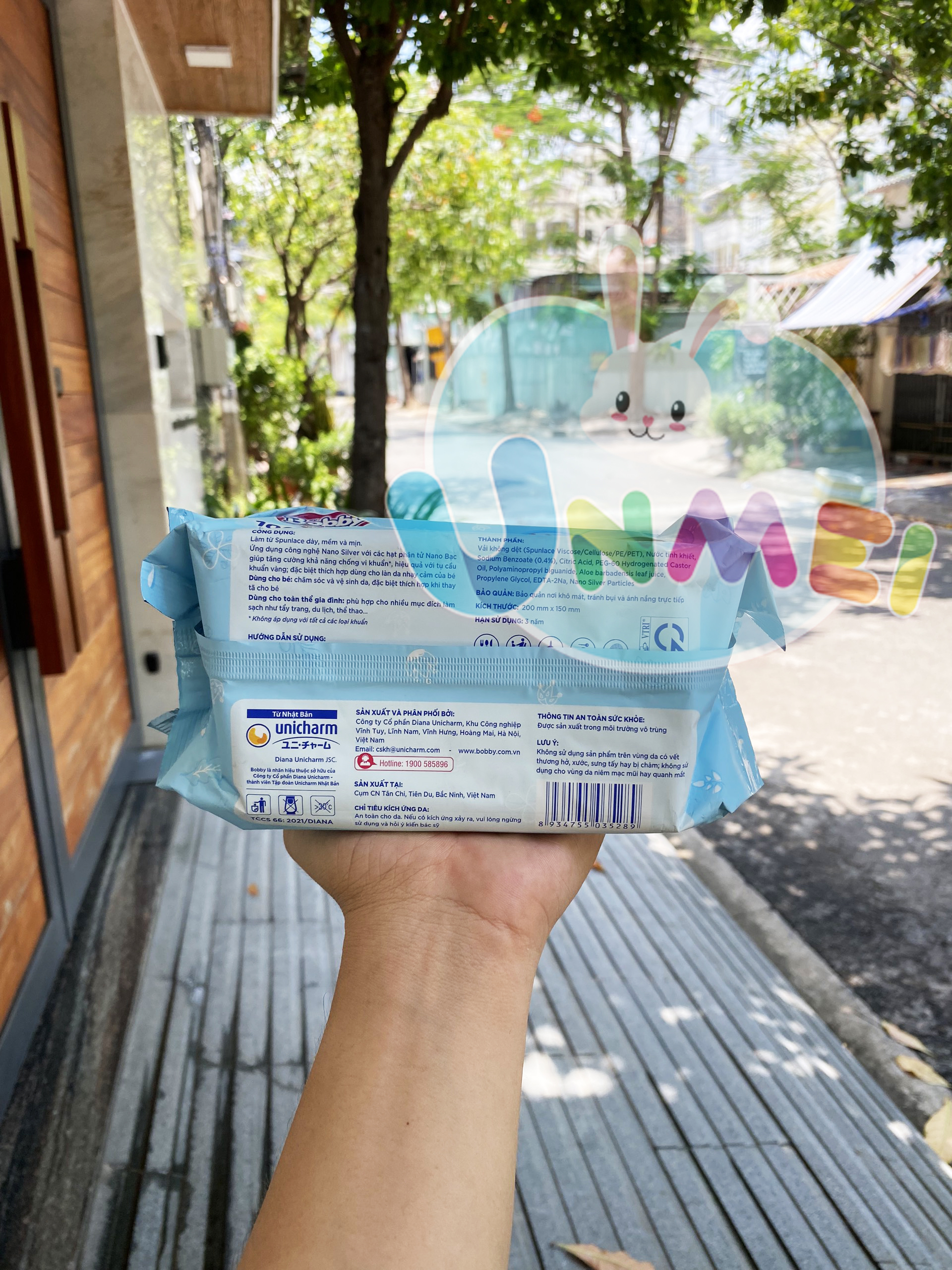 - Xuất xứ: Nhật Bản. Chất liệu & thành phần Vải không dệt (Spunlace Viscose/Cellulose/PE/PET), Nước tinh khiết, Sodium Benzoate (0.4%), Citric Acid, PEG-60 Hydrogenated Castor Oil, Polyaminopropyl biguanide, Aloe barbadensis leaf juice, Propylene Glycol, EDTA-2Na, Nano Silver Particles. Sản phẩm được Hội Sản Phụ Khoa Việt Nam khuyên dùng vì hoàn toàn không chứa chất tạo mùi, chất bảo quản parabens và cồn. Công dụng Ứng dụng công nghệ Nano Silver với các hạt phân tử Nano Bạc giúp tăng cường khả năng chống vi khuẩn, hiệu quả với tụ cầu khuẩn vàng, đặc biệt thích hợp dùng cho làn da nhạy cảm của bé.