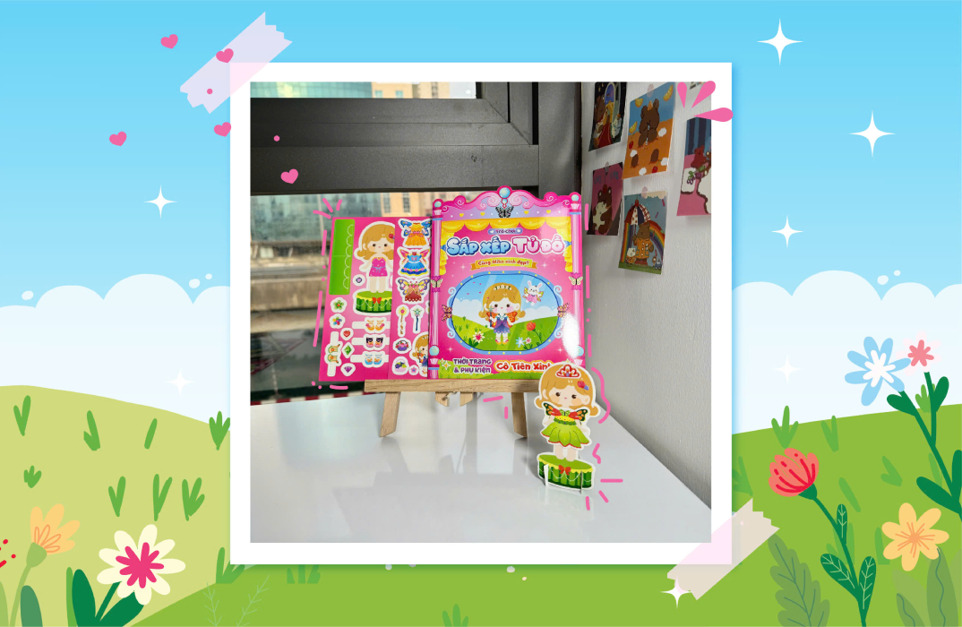 Trò chơi Sắp xếp tủ đồ cùng Mika xinh đẹp: thời trang và phụ kiện Nàng Tiên Cá Ưu điểm của bộ sách Nhiều chủ đề thú vị: Khám phá các phong cách như Cô tiên xinh, Mùa đông ấm áp, Nữ sinh trung học, Mùa hè sôi động, và Nàng tiên cá. Sticker dễ thương: Gồm nhiều trang phục và phụ kiện phong phú, giúp bé thoải mái sáng tạo. Bộ tranh công chúa giấy: Dễ dàng tháo gỡ và dán lại, bé có thể thay đổi trang phục cho Mika bất cứ lúc nào. Khuyến khích sự sáng tạo: Bé được tự do thiết kế, kết hợp các bộ trang phục theo ý thích. Thích hợp cho mọi độ tuổi: Giúp phát triển tư duy và khả năng phối hợp, tạo nên những giờ phút vui vẻ và ý nghĩa. Hướng dẫn cách chơi Lật mở ra các bạn sẽ thấy 1 tờ Chính là tủ đồ và 2 tờ chi tiết đi kèm 1 tờ là những stickers trang phục và phụ kiện, các bạn nhỏ sẽ gỡ các sticker đó và dán sắp xếp lên tủ đồ cho Mika nhé 1 tờ khác là tranh công chúa giấy, các bạn nhỏ sẽ gỡ ra và ghép, dán những bộ trang phục và phụ kiện cho Mika theo sở thích của mình Lưu ý Hãy bảo quản các sticker và tranh giấy để sử dụng nhiều lần. Khuyến khích bé thể hiện sự sáng tạo và kể câu chuyện về trang phục mà bé đã chọn cho Mika! Chúc các bé có những giờ phút vui vẻ và đầy sáng tạo!