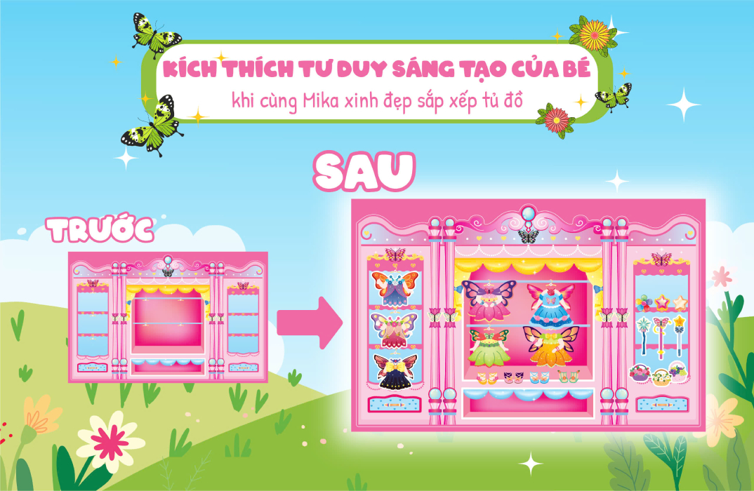 Mua tại TiktokCombo Trò Chơi Sắp Xếp Tủ Đồ Cùng Mika Xinh Đẹp (Bộ 5 Cuốn) Chào các bé! Hãy cùng Mika xinh đẹp khám phá thế giới thời trang trong bộ sách đồ "Trò chơi Sắp xếp tủ đồ cùng Mika xinh đẹp"! Bộ sách trò chơi có 5 cuốn với các chủ đề: Cô tiên xinh, Học sinh trung học, Mùa đông ấm áp, Mùa hè sôi và Nàng tiên cá. Với những sticker đáng yêu và bộ tranh giấy dễ dàng tháo dỡ, các bé có thể tha hồ sáng tạo, sắp xếp tủ đồ và thay đổi trang phục cho Mika. Hãy cùng nhau bày biện tủ đồ thật ngăn nắp và tạo ra những bộ trang phục thật đẹp nhé! Bộ sách "Trò chơi Sắp xếp tủ đồ cùng Mika xinh đẹp" gồm 5 cuốn: