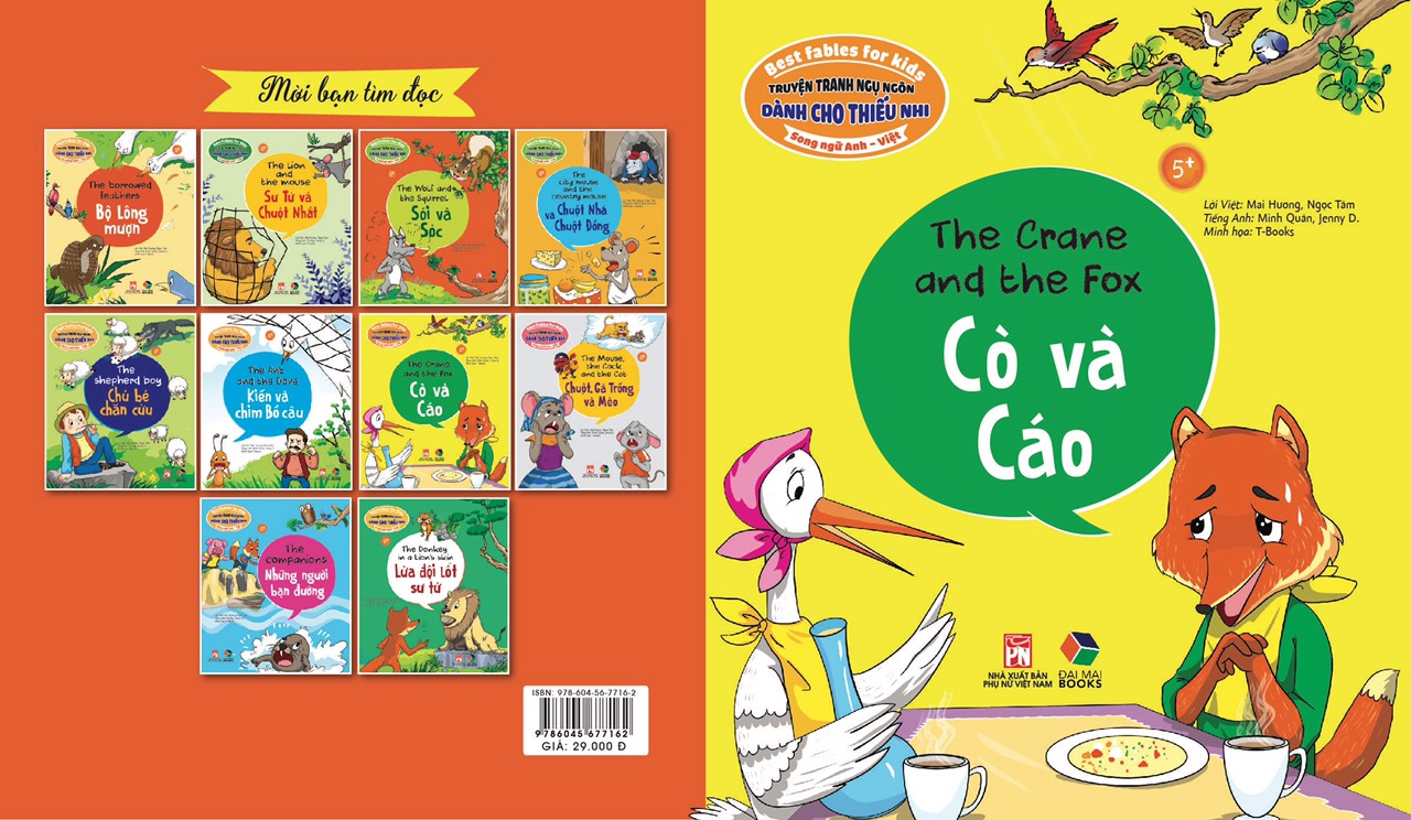 Combo Truyện tranh ngụ ngôn dành cho thiếu nhi song ngữ Anh - Việt ( Bộ 4 cuốn bộ lông mượn + sư tử và chuột nhắt+ cò và cáo + chuột , gà trống và mèo