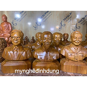 Mua tại TiktokTượng chân dung 3 vĩ nhân làm lên lịch sử đất Việt ,1 Chủ tịch hồ Chí Minh , 2 đại tướng võ nguyên giáp , 3 tổng Bí thư nguyễn phú trọng được làm bằng chất liệu gỗ bách xanh thơm nức tự nhiên 100% Kt cao 20x14cm _ Bộ tượng được chế tác làm và hoàn thiện từ bàn tay khối óc tài hoa và những người thợ giàu kinh nghiệm cũng như tay nghề cao trong làng nghề truyền thống.