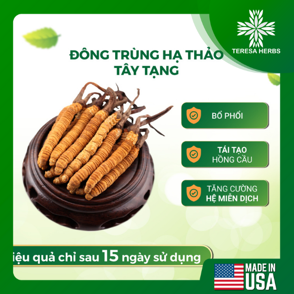 Mua tại TiktokTên sản phẩm: Combo Thực phẩm chức năng - Thảo dược hỗ trợ phục hồi sức khỏe hậu Co.vid 19 (Made in USA) Combo là sự kết hợp của 2 sản phẩm: Teresa Herbs Tibetan Cordyceps Sinensis và Teresa Herbs Mt. Fuji Coriolus Versicolor Tên sản phẩm: Đông Trùng Hạ Thảo Tây Tạng - Teresa Herbs Tibetan Cordyceps Sinensis 60 Capsules Nutritional Supplement Số lượng: 60 viên nang bổ sung dưỡng chất (500mg/viên) Thông tin thành phần: mỗi viên 500mg có chứa Thành phần Hàm lượng Chiết xuất Đông trùng hạ thảo: Polysaccharide 43% Adenosine 12% 450mg Ascorbic Acid (Vitamin C) 50mg Công dụng: