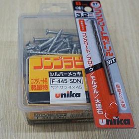 ✨Combo Vít bê tông 4mm đầu bằng F445 & Mũi khoan bê tông 3.2mm đuôi kẹp Unika (không cần tắc kê nhựa)