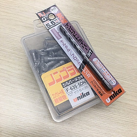 Vít đầu bằng, phi 6mm, dài 35mm Số lượng: 40vít/hộp. Vít làm bằng hợp kim rất chắc chắn, được mạ bạc toàn thân chống gỉ sét. Vít chịu lực kéo 2,2kN, khi tính toán thực tế bằng 1/10 Không cần dùng tắc kê nhựa Thân vít rất cứng và tự tạo răng bám chặt vào trần, tường. Mũi khoan phi 5.5, dài 100mm, chuôi lục giác (6.35mm). Dễ dàng gắn vào các loại máy khoan vặn vít sử dụng pin Chuyên dùng để khoan tường (tường nhật), gạch, , vữa, ALC Mũi khoan sản xuất ở Việt Nam theo tiêu chuẩn và công nghệ Unika Nhật.