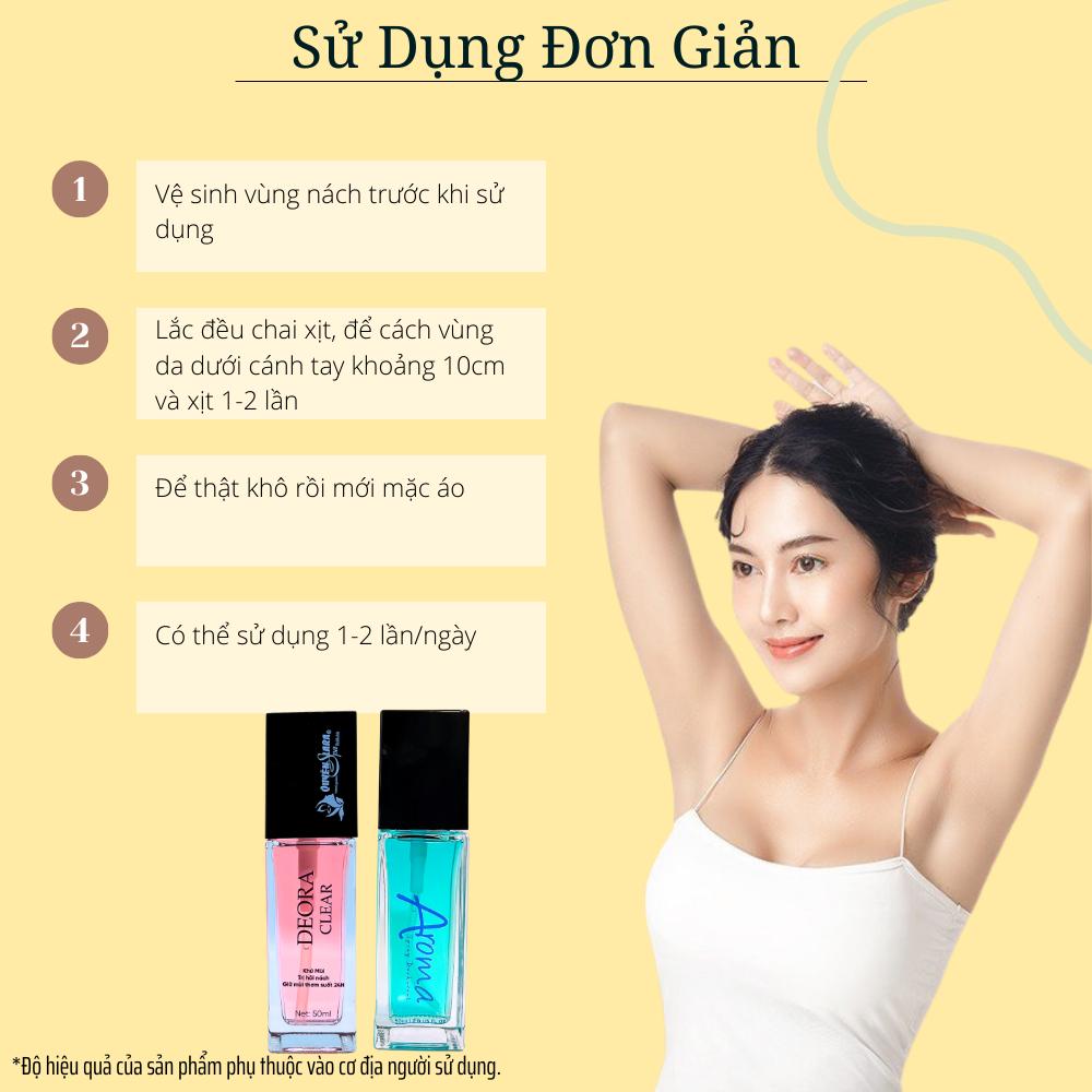 ✨COMBO Xịt Khử Mùi DEORA CLEAR & AROMA 50ml, Khử Mùi Hôi Nách, Ngăn Tiết Mồ Hôi, Không Gây Ố Vàng Áo