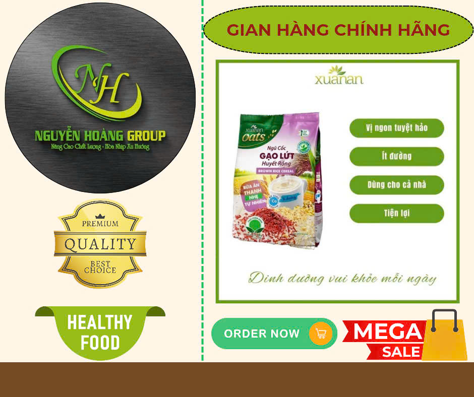Mua tại TiktokThành Phần: Gạo lứt huyết rồng , Yến Mạch , Ngô , Đậu Xanh , lúa mạch , múa mỳ , canxi Công dụng : Trong ngũ Cốc có đường ISOMALT : Đây là loại dường chiết xuất từ củ cải đường , được viện dinh dưỡng và trung tâm nghiên cứu bệnh đái tháo đường khuyên dùng => Rát tốt cho sức khỏe , phòng bệnh mãn tính đặc biệt là bệnh tiểu đường. Đối Tượng Sử dụng: