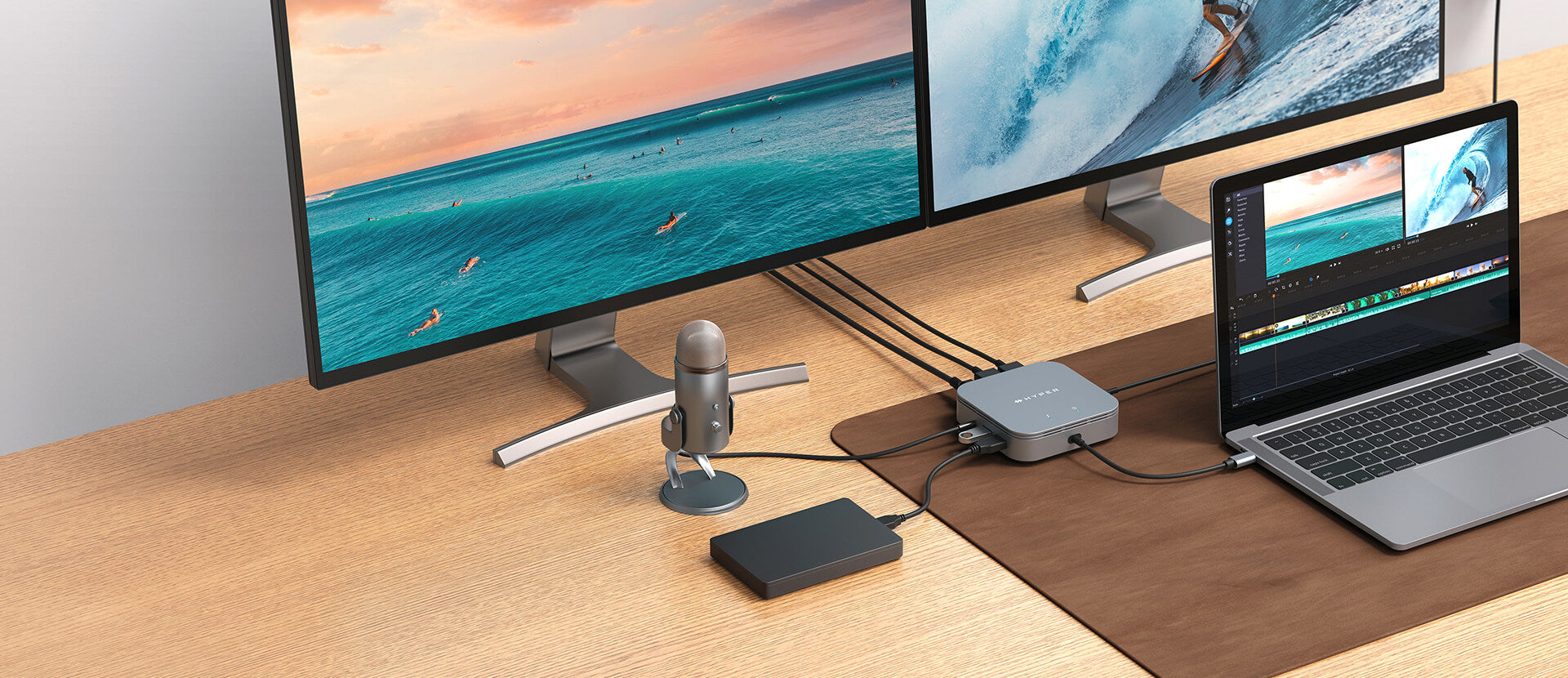 Các cổng đa dạng: HyperDrive cung cấp nhiều cổng thiết yếu, bao gồm Thunderbolt 3, USB-A, USB-C, Ethernet, cổng audio, DisplayPort và HDMI, giúp bạn kết nối với nhiều thiết bị và phụ kiện khác nhau.