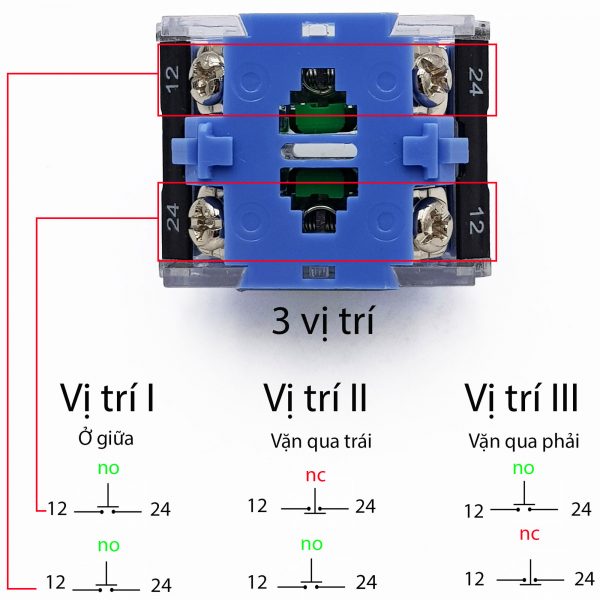 - Công tắc xoay chuyển mạch 2 vị trí – 3 vị trí.