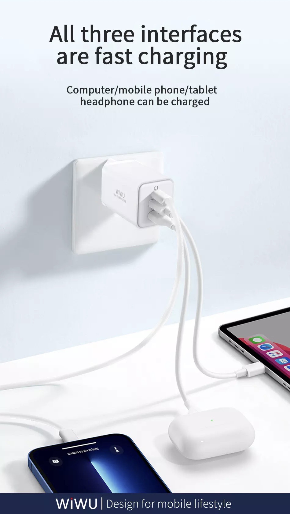 THÔNG TIN CƠ BẢN - Thương hiệu: WiWU - Model: Wi-G011 - Năm sản xuất: 2025 - Loại sạc: Sạc GaN nhiều cổng, công suất cao - Kết nối: Cắm điện trực tiếp 220V. - Kích thước:
