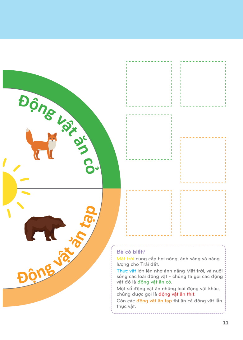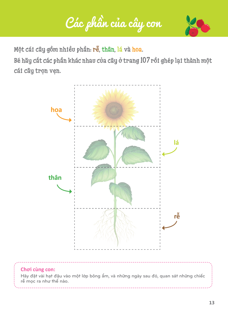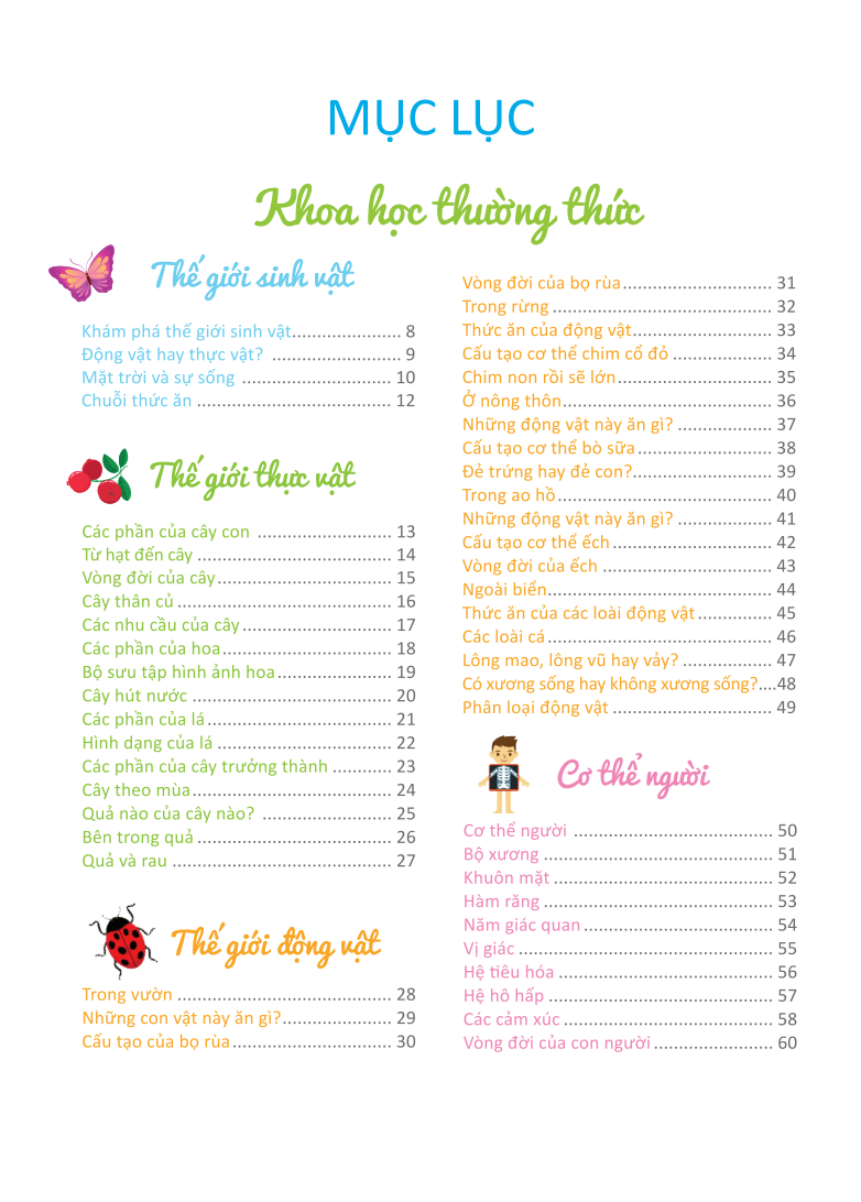 Trước hết, bé sẽ được khuyến khích khám phá thế giới sinh vật qua các hoạt động khác nhau liên quan đến thế giới động vật và thực vật, cùng cơ thể người: Vòng đời của cây diễn ra như thế nào? Động vật ăn tạp ăn những gì? Cơ thể con người được cấu tạo ra sao?