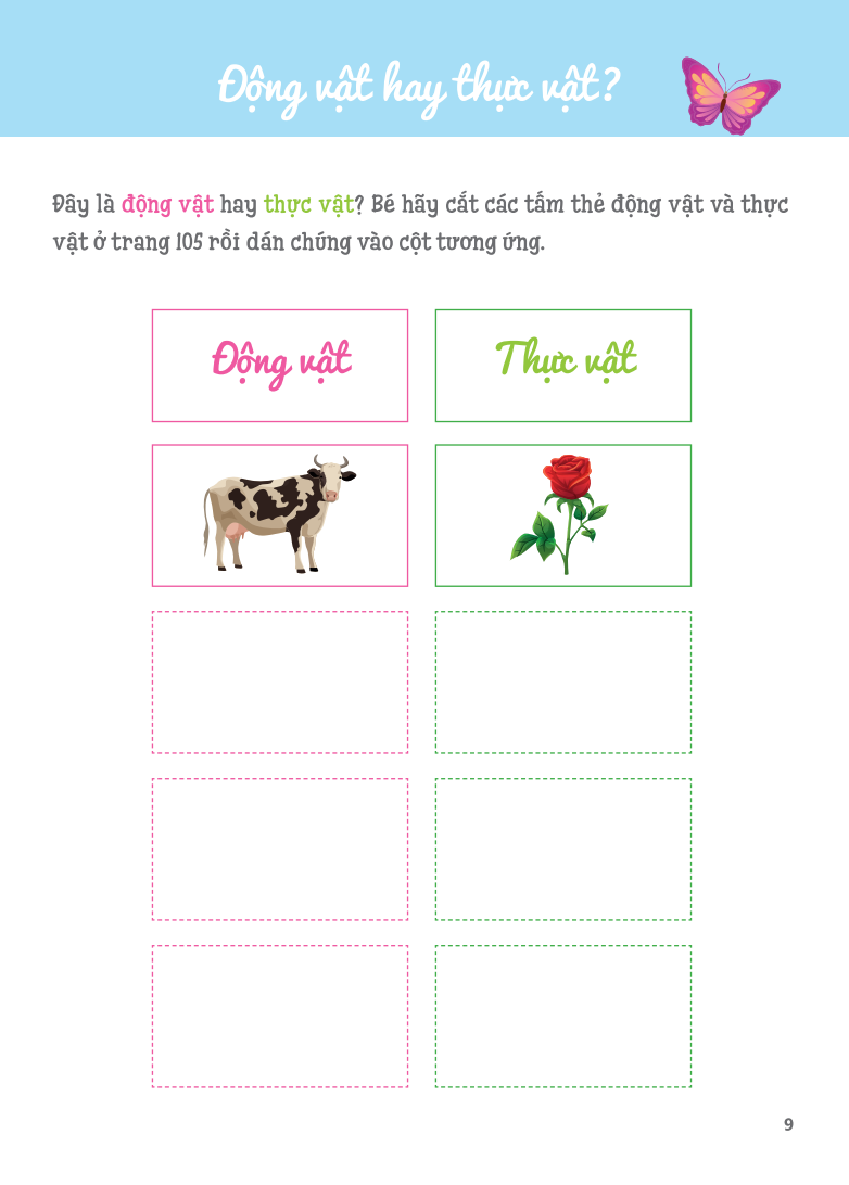 Các hoạt động dựa trên những nguyên tắc cơ bản của phương pháp giáo dục Montessori; kèm theo những tấm thẻ cắt ra để dán hoặc ghép: hình động vật và thực vật, miếng ghép,