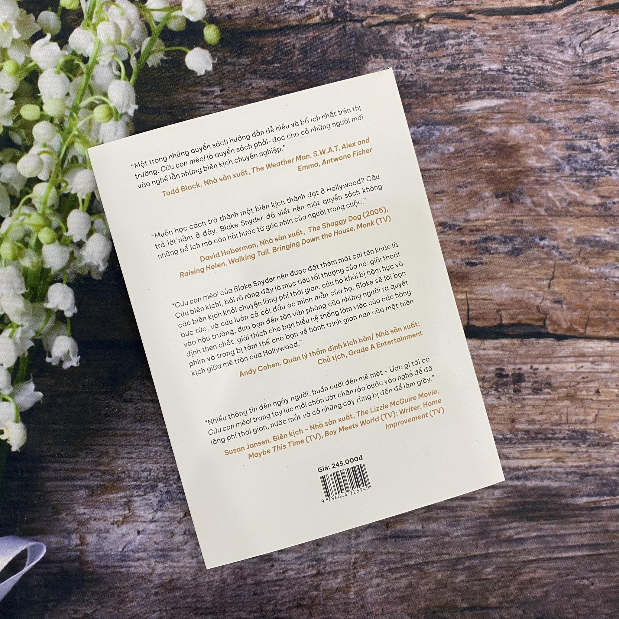 Mua tại TiktokBạn sẽ không cần đến quyển sách nào về nghề biên kịch nữa! "Một trong những quyển sách hướng dẫn dễ hiểu và bổ ích nhất trên thị trường. Cứu con mèo! là quyển sách phải-đọc cho cả những người mới vào nghề lẫn những biên kịch chuyên nghiệp." Todd Black, Nhà sản xuất, Thé Weather Man, S.W.A.T, Alex and Emma, Antwone Fisher "Muốn học cách trở thành một biên kịch thành đạt ở Hollywood? Câu trả lời nằm ở đây. Blake Snyder đã viết nên mộ quyển sách không những bổ ích mà còn hài hước từ góc nhìn của người trong cuộc." David Hoberman, Nhà sản xuất, The Shaggy Dog (2005), Raising Helen, Walking Tall, Bringing Down the House, Monk (TV)