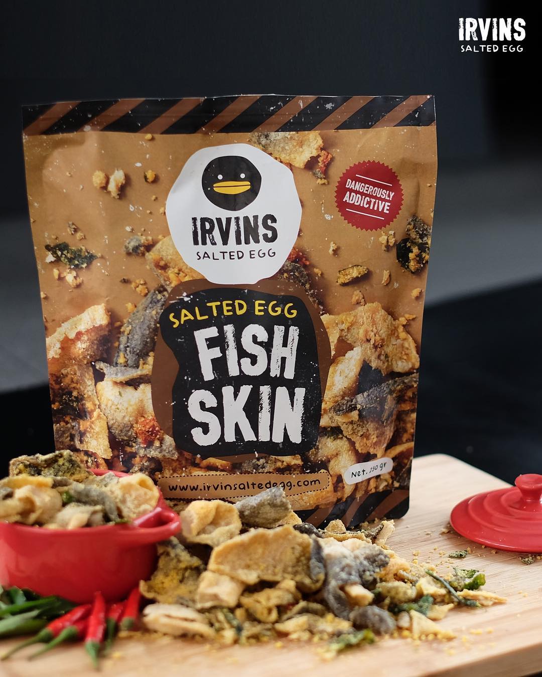 IRvins ra mắt size mới - Da cá trứng muối cay 50g IRVINS Thành phần: Da cá Pangasius, lòng đỏ trứng vịt muối, ớt đỏ Giòn rụm - Thơm lừng - Béo ngậy -
