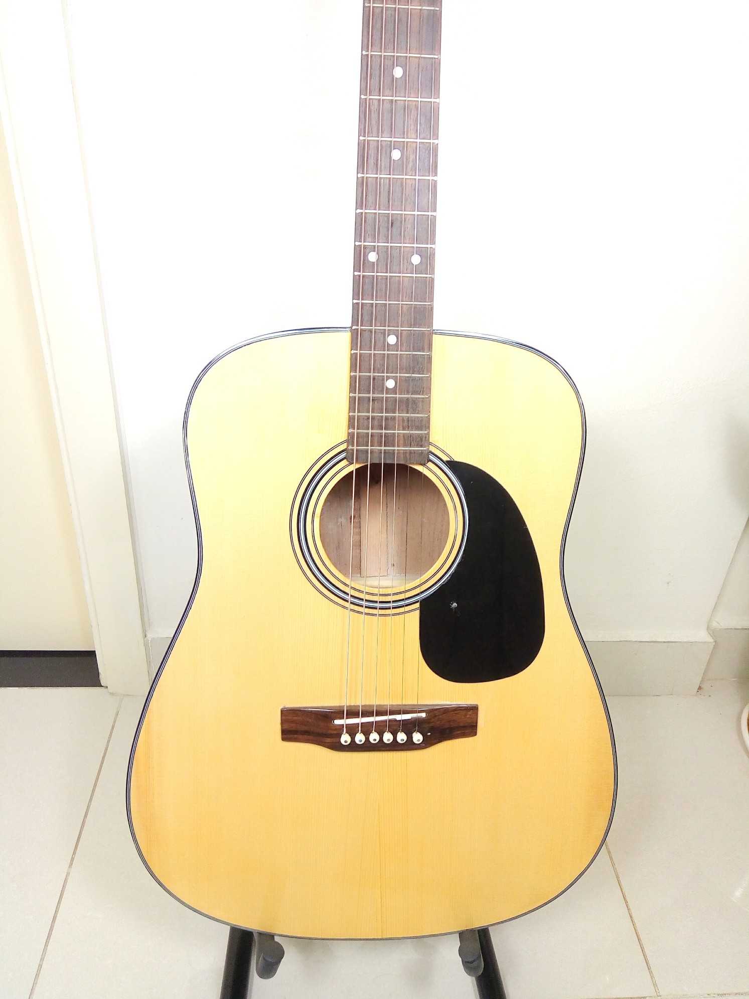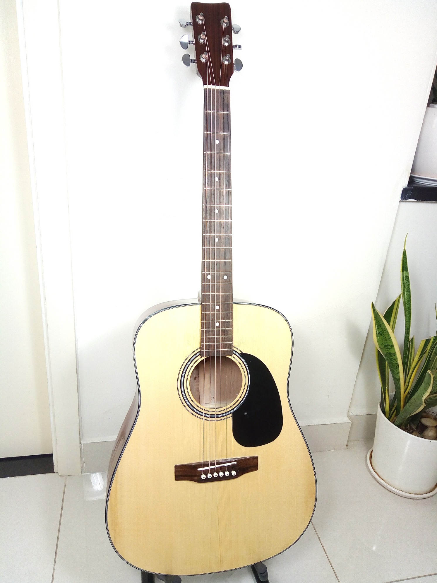 Guitar Acoustic là loại guitar dây sắt, phù hợp để chơi các thể loại nhạc trẻ, đệm hát... Dòng guitar Acoustic dành cho thị trường Thái Lan Mặt được làm bằng gỗ .Dòng đàn Guitar