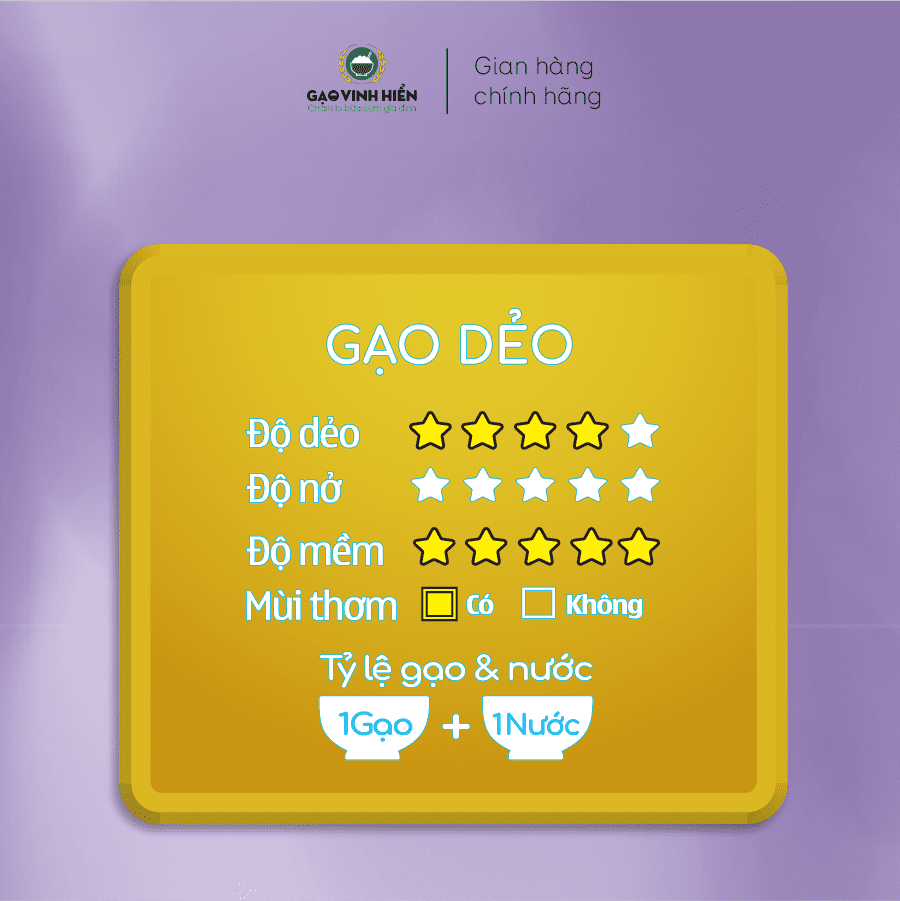 - Gạo là giống lúa tuyển chọn của vùng Đồng Bằng Sông Cửu Long, được biết đến là giống gạo tiến vua ngày xưa.