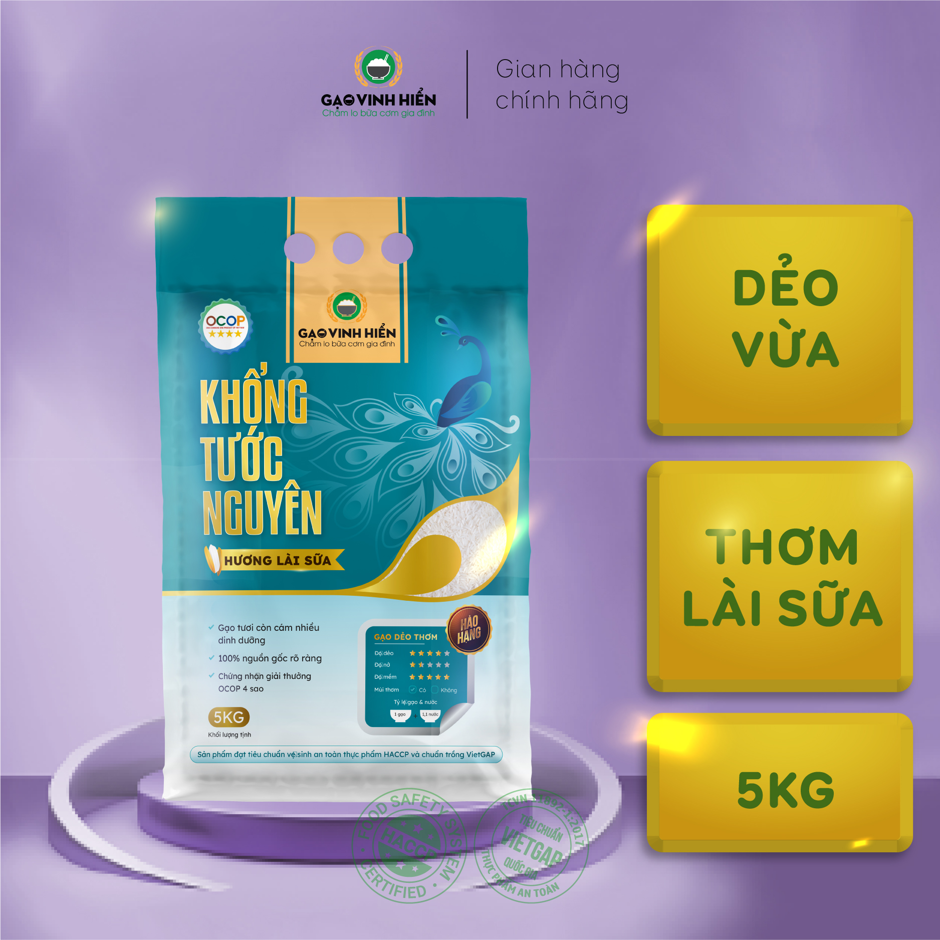 ✨Đặc sản Tiền Giang - Gạo hương lài sữa Khổng Tước Nguyên (5Kg) - OCOP 4 SAO