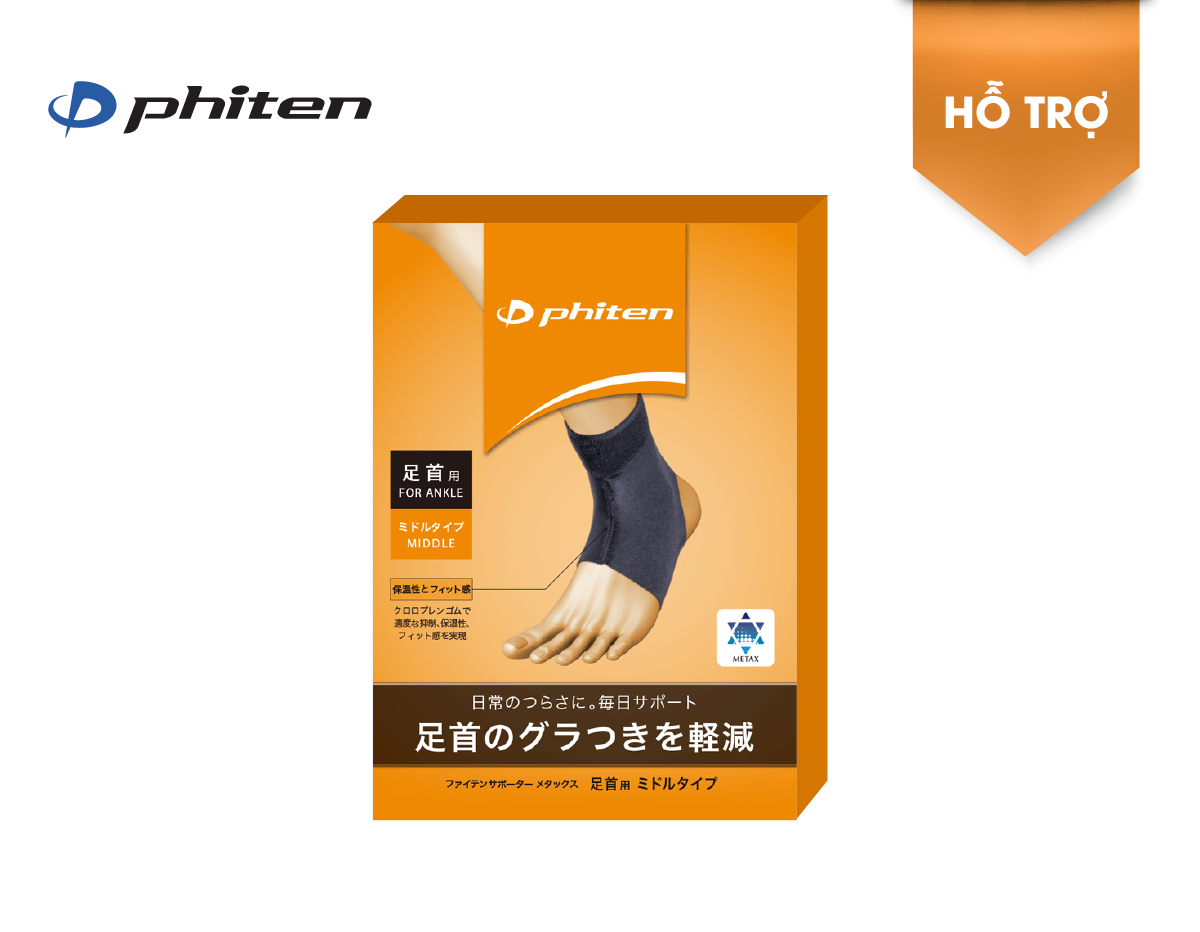 Đai bảo vệ mắt cá chân Titanium mới của Phiten, rất thoải mái để đeo hàng ngày bảo vệ mắt cá chân; sản phẩm lý tưởng cho những người gặp khó khăn khi đứng trên đôi chân của họ trong thời gian dài. Chất liệu mỏng cho phép bạn mang giày hỗ trợ. Chất liệu cao su cloropren có khả năng giữ nhiệt và hạn chế vận động quá mức.