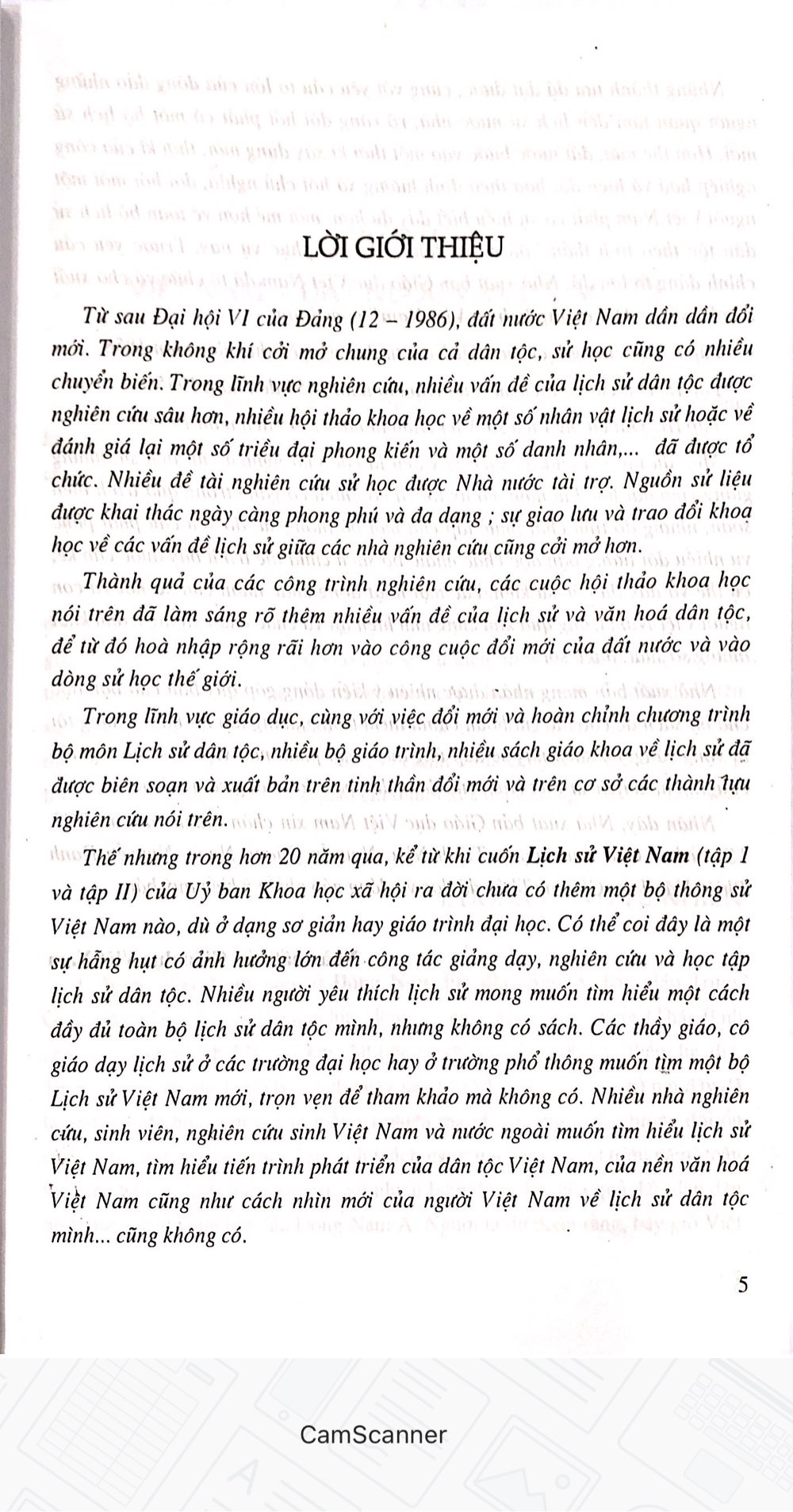 Thế nhưng trong hơn 20 năm qua , kể từ khi cuốn Lịch sử Việt Nam ( tập 1 và tập II ) của Uỷ ban Khoa học xã hội ra đời chưa có thêm một bộ thông sử Việt Nam nào , dù ở dạng sơ giản hay giáo trình đại học . Có thể coi đây là một sự hằng hạt có ảnh hưởng lớn đến công tác giảng dạy , nghiên cứu và học tập lịch sử dân tộc . Nhiều người yêu thích lịch sử mong muốn tìm hiểu một cách đầy đủ toàn bộ lịch sử dân tộc mình , nhưng không có sách . Các thầy giáo , cô giáo dạy lịch sử ở các trường đại học hay ở trường phổ thông muốn tìm một bộ Lịch sử Việt Nam mới , trọn vẹn để tham khảo mà không có . Nhiều nhà nghiên cứu , sinh viên , nghiên cứu sinh Việt Nam và nước ngoài muốn tìm hiểu lịch sử Việt Nam , tìm hiểu tiến trình phát triển của dân tộc Việt Nam , của nền văn hoá Việt Nam cũng như cách nhìn mới của người Việt Nam về lịch sử dân tộc mình cũng không có .