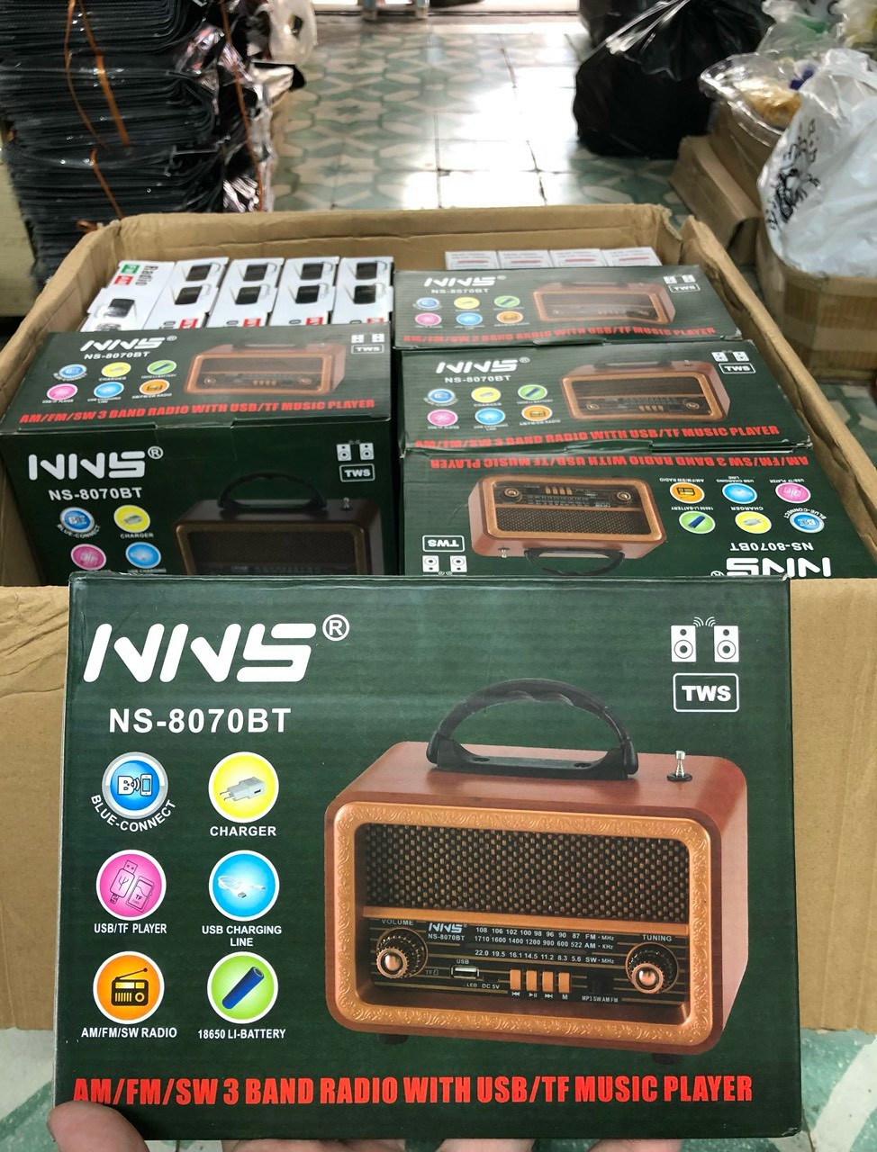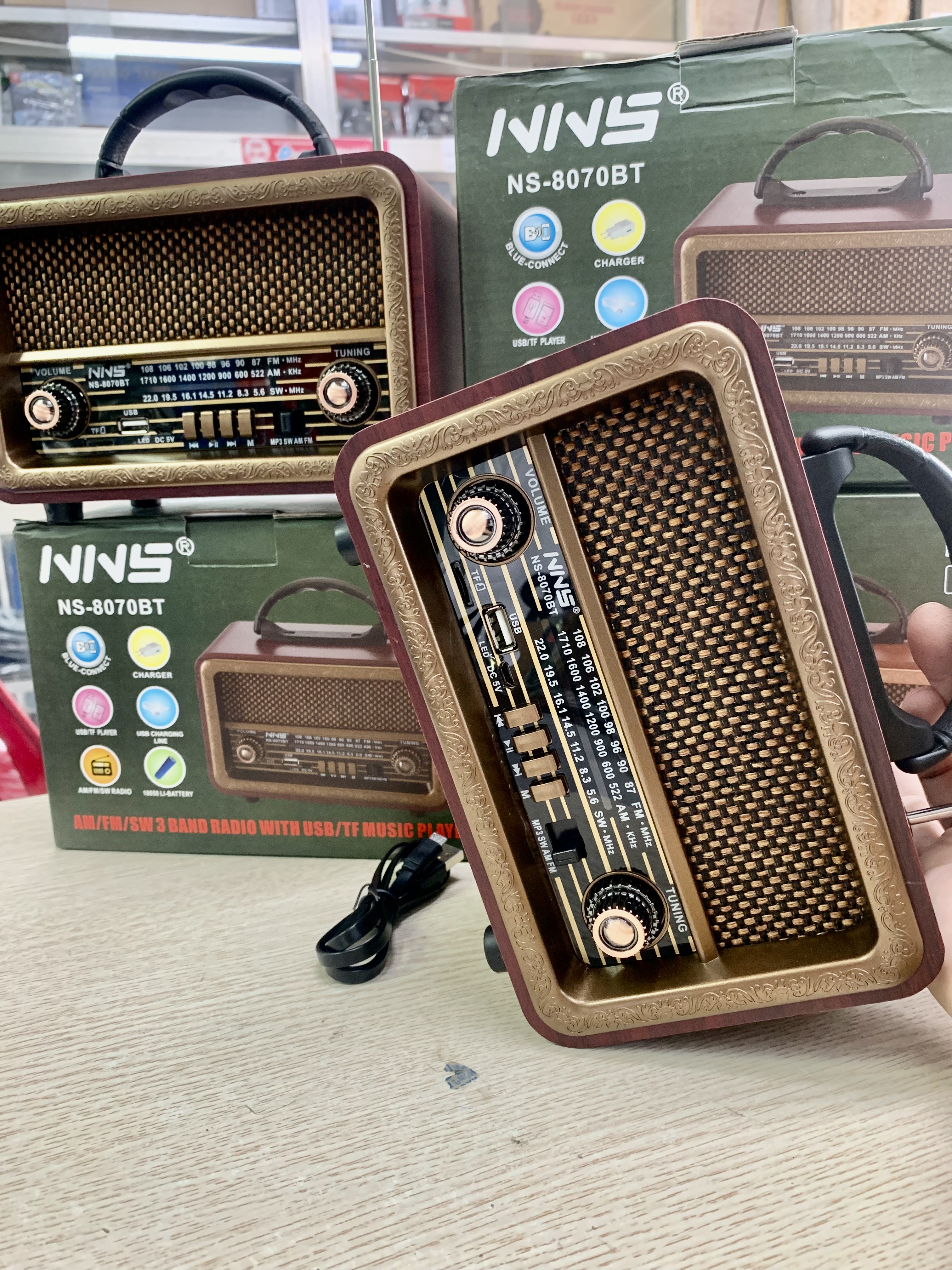 - Đài radio NS-8070BT được lắp đặt sẵn pin bên trong, tích hợp sẵn anten nên khả năng thu sóng là tương đối cao, bắt sóng tốt ở cả 3 hệ kênh là FM, AM và SW. Bạn cũng có thể nghe những bản nhạc du dương, trữ tình thông qua cổng kết nối USB hoặc thẻ nhớ SD và đặc biệt có thể bắt được bluetooth.