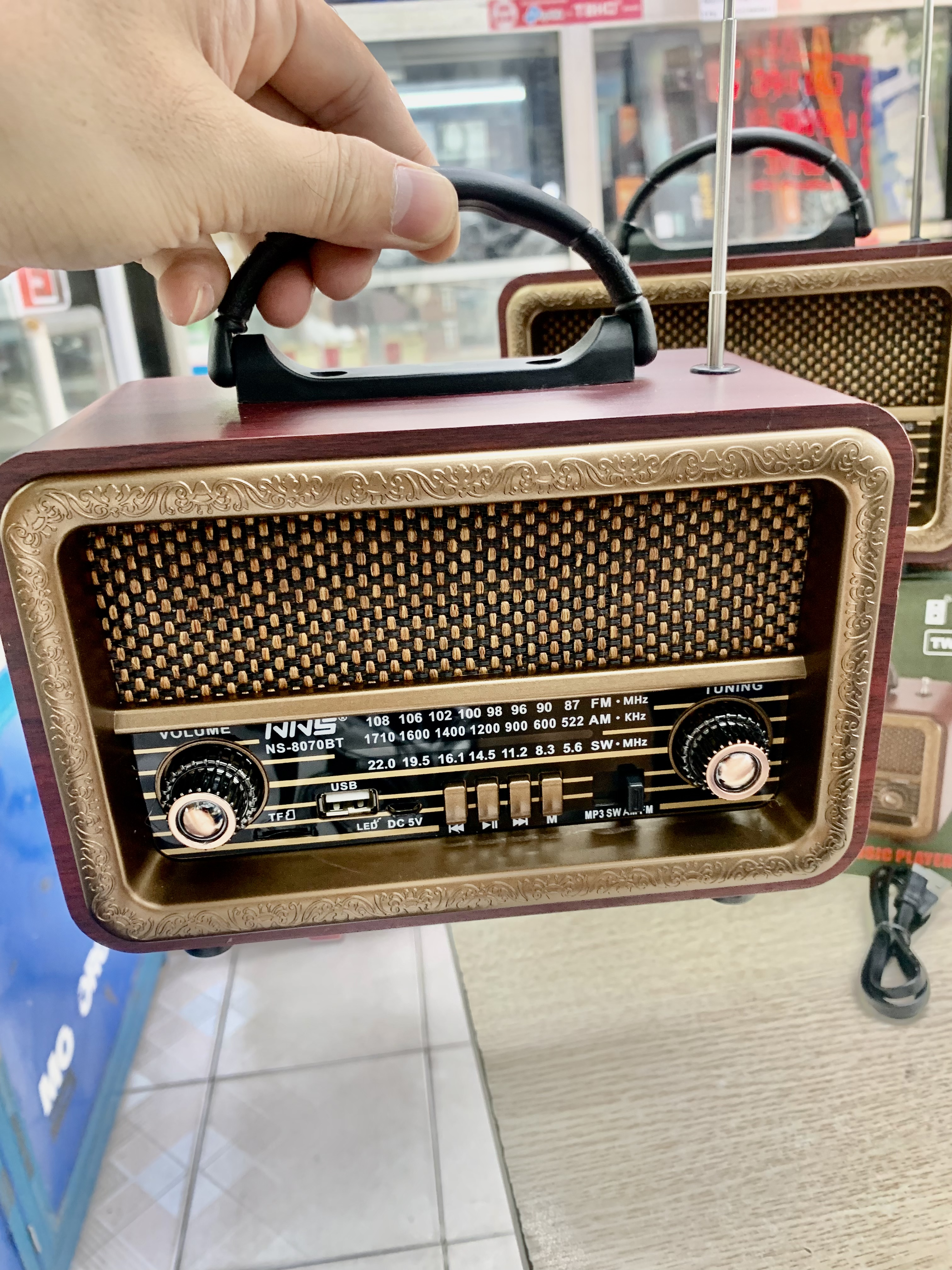 Mô tả sản phẩm Đài FM- NS 8091BT Radio FM/AM/SW nghe nhạc thẻ nhớ usb ,kết nối Bluetooth ,hình thức cổ điển sang trọng: Là sản phẩm mang nhiều hoài niệm cho người lớn tuổi
