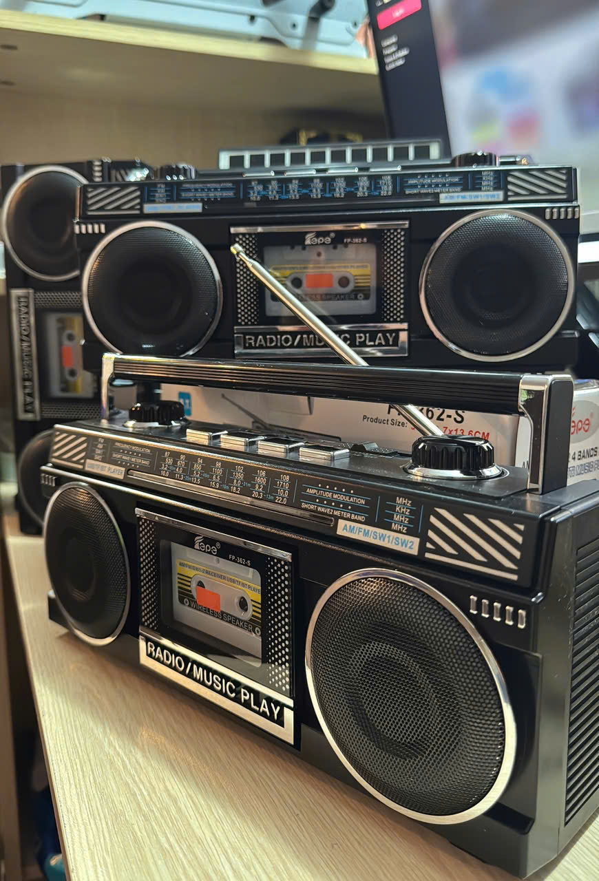 - Chắc hẳn trong mỗi người dân Việt Nam chúng ta ai cũng có những kỷ niệm về chiếc ĐÀI RADIO đây là một lừa chọn hoàn hảo nhất cho chúng ta. .Đài radio FP-362S 2 LOA :đa dạng với nhiều màu sắc Đa dạng với 3 màu sắc:VÀNG -NÂU - ĐEN không chỉ có một màu sắc duy nhất, mà bạn có thể lựa chọn từ 3 tùy chọn khác nhau. Điều này tạo ra sự phong phú và sẽ đáp ứng nhu cầu cá nhân của bạn. Bất kể bạn yêu thích sắc VÀNG nổi bật, hay màu đen sang trọng hoặc màu NÂU trang nhã, đài radio FP-362S sẽ là món đồ nội thất lý tưởng cho không gian của bạn. -Thiết kế ĐẸP tiện lợi: Với kích thước31X10X14 , đài radio đa năng dễ dàng di chuyển và đặt ở bất kỳ vị trí nào trong nhà bạn. Không chiếm quá nhiều không gian, bạn có thể dễ dàng đặt nó trên bàn làm việc, kệ sách, hoặc trên kệ trang trí. -Hiệu suất âm thanh tuyệt vời: Đừng để kích thước làm bạn nhầm lẫn. mang lại hiệu suất âm thanh tốt vượt xa mong đợi. Thưởng thức âm nhạc yêu thích, các chương trình truyền thanh hay các tin tức mới nhất một cách rõ ràng và sống động. -Với những ưu điểm nổi bật này,FM FP-262S thực sự là sự lựa chọn tuyệt vời để bổ sung vào không gian sống của bạn. Hãy lựa chọn một trong ba màu sắc phong cách và trải nghiệm niềm vui từ âm nhạc và thông tin mỗi ngày cùng với đài fmFP-362S. ️ THÔNG SỐ KỸ THUẬT Model : FP-2382-S Bắt sóng Radio kiểu dò tay / điều khiển với băng tần FM / AM / SW / MP3 Sóng : AM : 552- 1710KHz - FM : 87-108 KHz - SW : 5.6 - 22.0MHz Có bluetooth : V5.0 Thiết bị hỗ trợ cổng kết nối TF, USB, AUX Thiết bị được sạc Pin qua cổng Type C, có thể kết nối với máy tính xách tay, máy bàn, hoặc cắm vào củ sạc điện thoại Mỗi lần sạc đầy có thể sử dụng được 5-6 giờ liên tục ( khoản 50% công xuất) Thời gian sử dụng pin: 6-8 giờ Thời gian sạc khoảng 3-4 giờ AC: 110-220V / 60-50HZ DC: TYPE*C 5V - Hoặc Sạc bằng năng lượng mặt trời Kích Thước Hộp : 22 x 7.5 x 14 cm Trọng lượng: 800gr -SP ĐƯỢC BẢO HÀNH LÊN TỚI 12 THÁNG NGUYÊN TEM NGUYÊN HỘP.