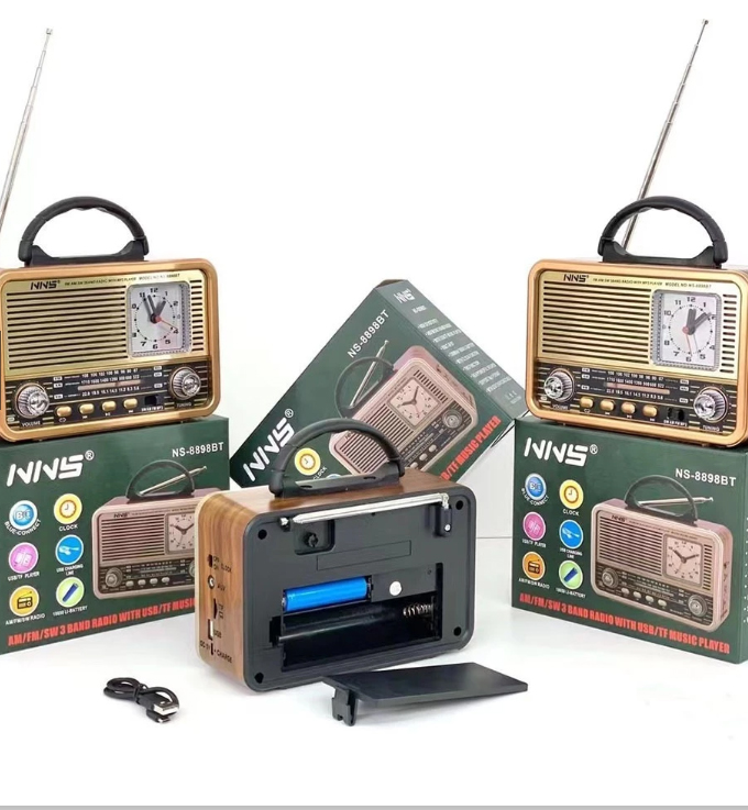 Đài Fm Radio Bluetooth NS8898BT Có Đồng Hồ Cổ Điển Công Nghệ Nhật | Giá 290k - H2pro 0898259888