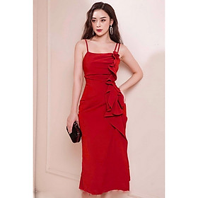 Đầm 2 Dây Nhún Eo Xẻ Đùi PLANY (ĐEN)