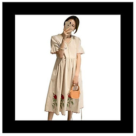 Váy Bầu Thiết kế dáng dài thoải mái bầu to không hớt , Đầm Bầu Công Sở Dài Tay V36 - Đầm bầu xinh cho các mom phối tơ thêu với chéo hàn siêu sang,
