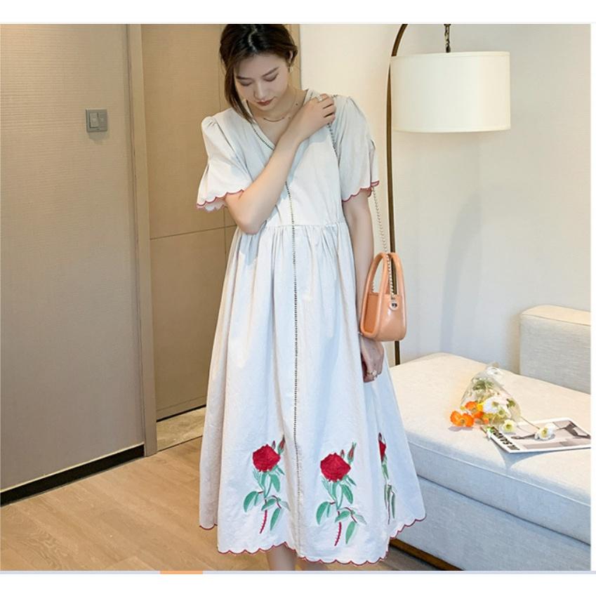 ✨ĐẦM BẦU VÁY BẦU CÔNG SỞ THÊU BÔNG HỒNG
