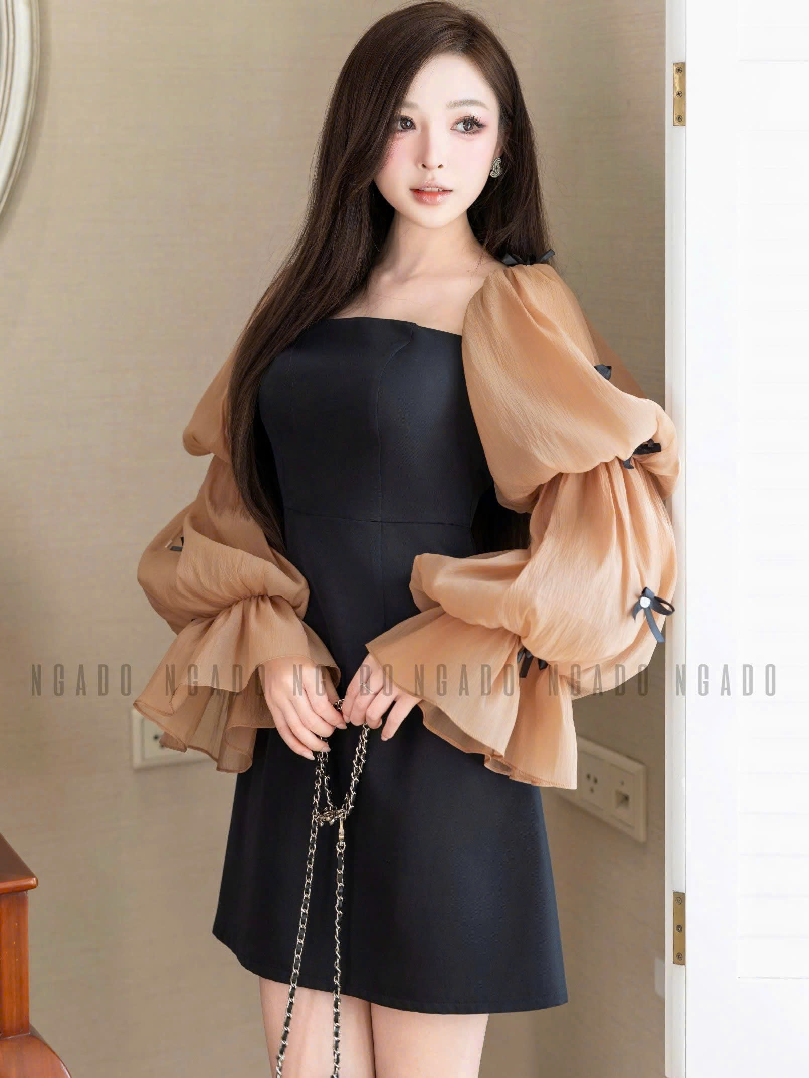 ✨Đầm đen tay voan phồng NGADO , đầm dự tiệc , đầm dạo phố