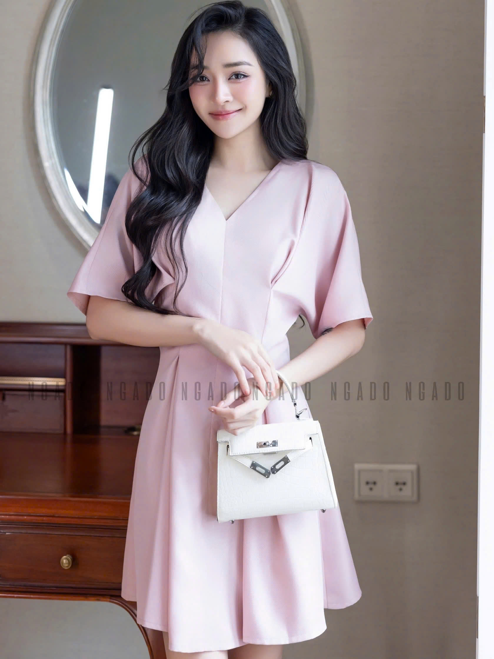 ✨Đầm hồng eo xếp ly NGADO , đầm Nữ , đầm ngắn , đầm công sở , dự tiệc