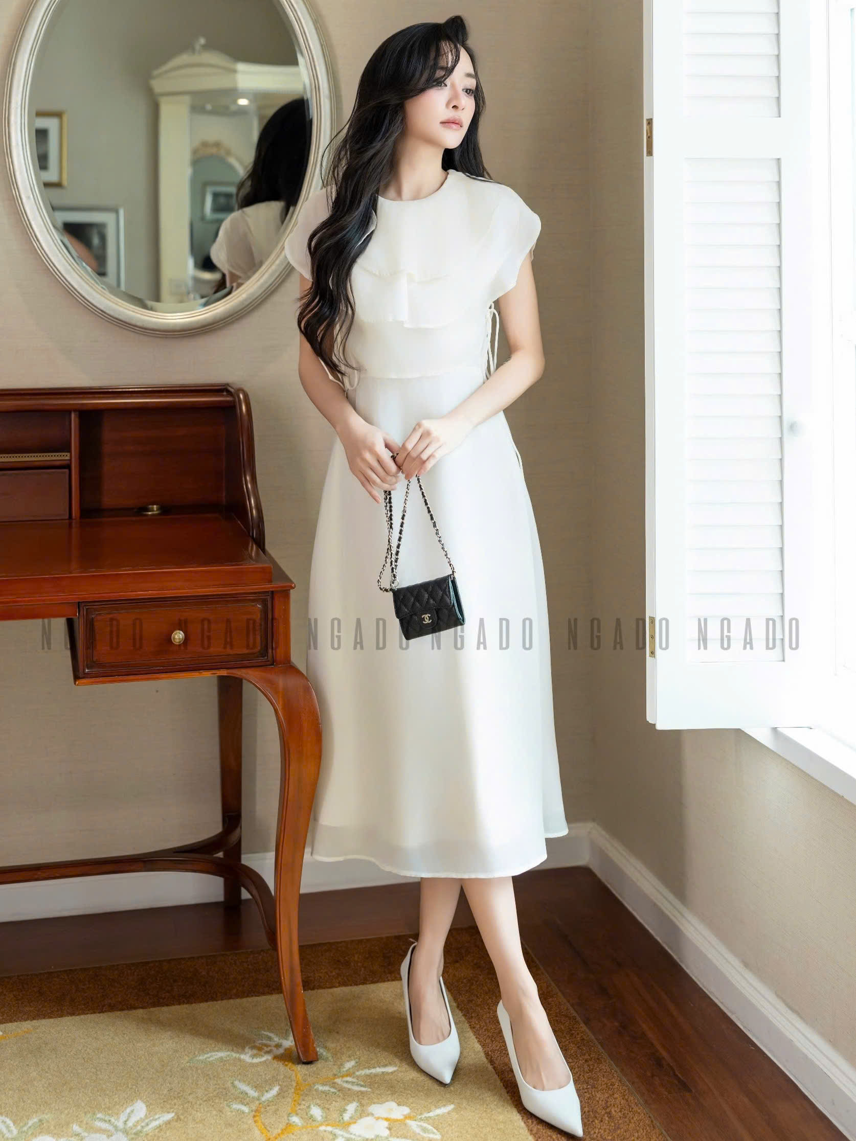 Mua tại Tiktokღ THÔNG TIN SẢN PHẨM: Tên sản phẩm: Đầm kem cổ xếp tầng Chất liệu: Chất tơ Chi tiết sản phẩm: có lót, không túi Thông số size: S, M, L, XL • Thương hiệu: NGADO • Xuất xứ: Việt Nam