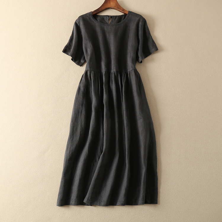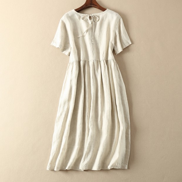 Đầm Suông Linen Cổ Đức,Váy Sơ mi Công Sở, Dạo Phố - Phong Cách Thời Trang Hàn Quốc