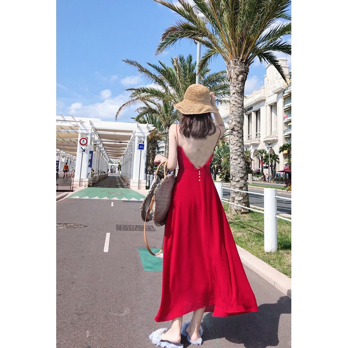 Váy Đầm Maxi Yếm Đi Biển Hai Tầng Hở Lưng Sang Chảnh