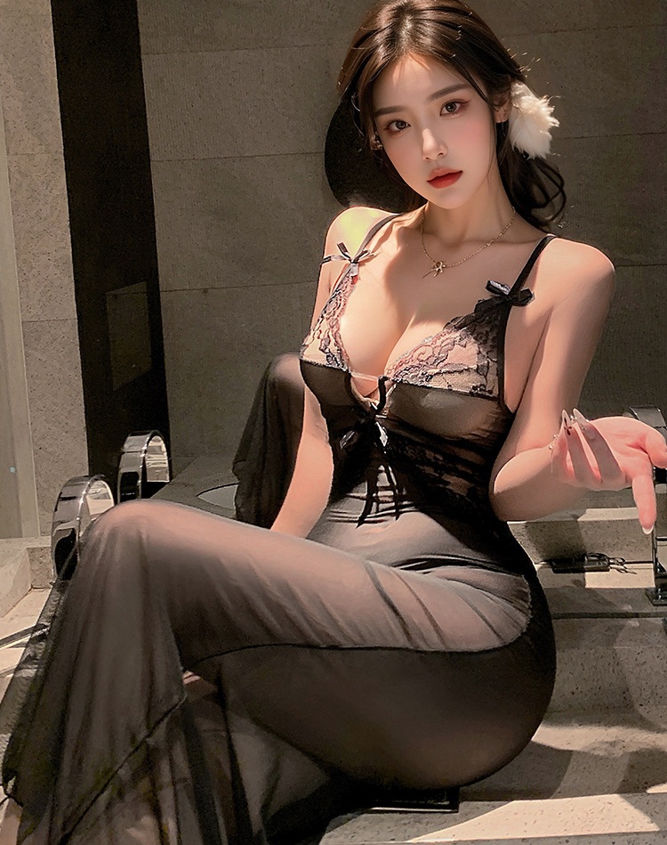 Chiếc đầm ngủ dài xuyên thấu với chất liệu voan mỏng nhẹ kết hợp ren cao cấp không chỉ đơn thuần là một bộ đồ ngủ, giúp nàng tỏa sáng trong từng khoảnh khắc riêng tư. Thiết kế ôm sát đường cong, tôn dáng tuyệt đối, kết hợp phần ngực phối ren hoa và dây đan tinh tế, tạo nên hiệu ứng thị giác quyến rũ mà vẫn sang trọng.
