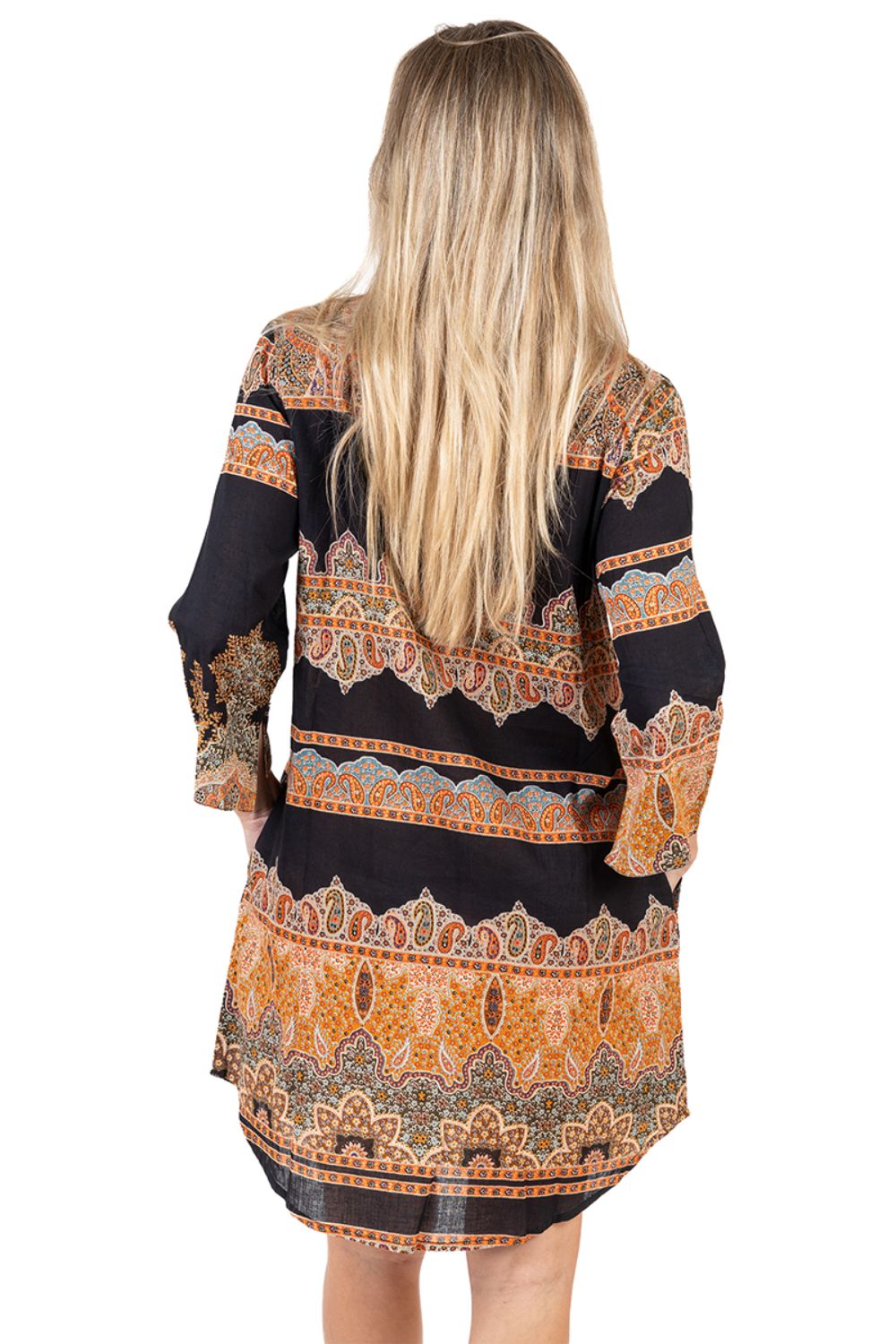 Đầm Boho Dài Tay Isla Bonita, chất lụa cao cấp, mềm mại, thun co giãn ở eo. Phom suông xòe rộng. Dài đầm 90cm (45x90) Phù hợp đi biển, dạo phố, công sở, hoặc dự