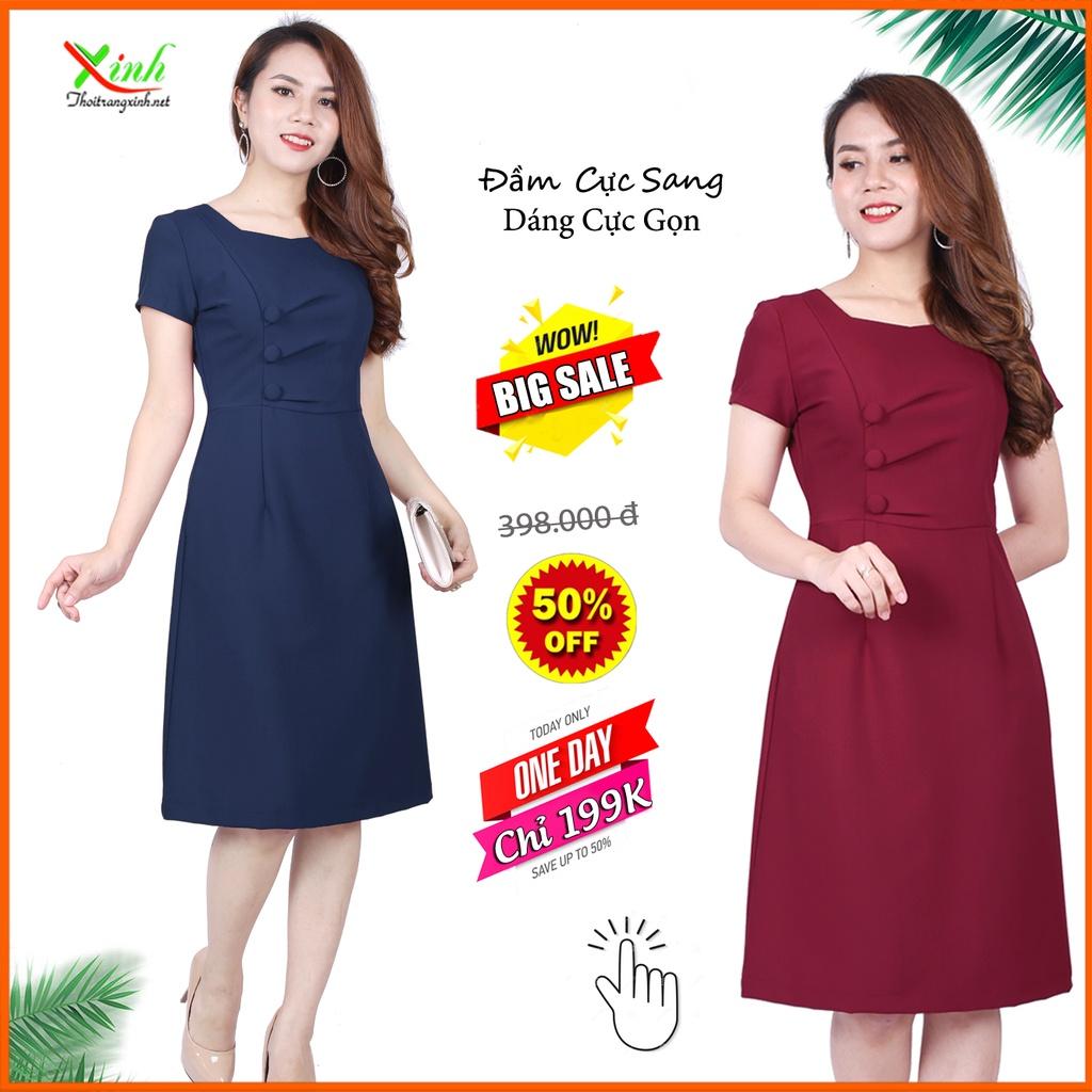 Đầm Suông phối cúc thanh lịch sang trọng