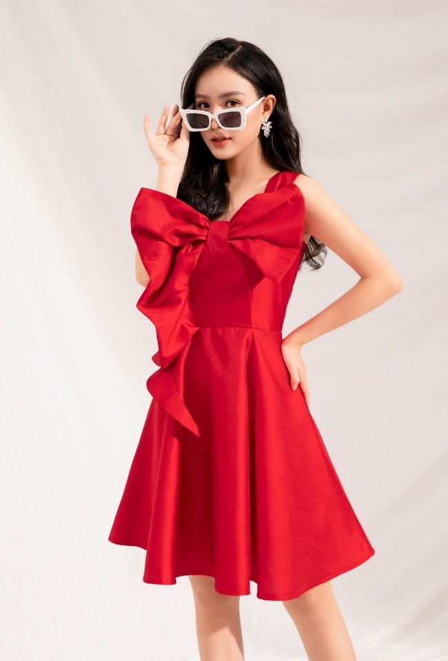 ✨ĐẦM XÒE MỘT VAI DÚN NƠ LỚN TRƯỚC NGỰC
