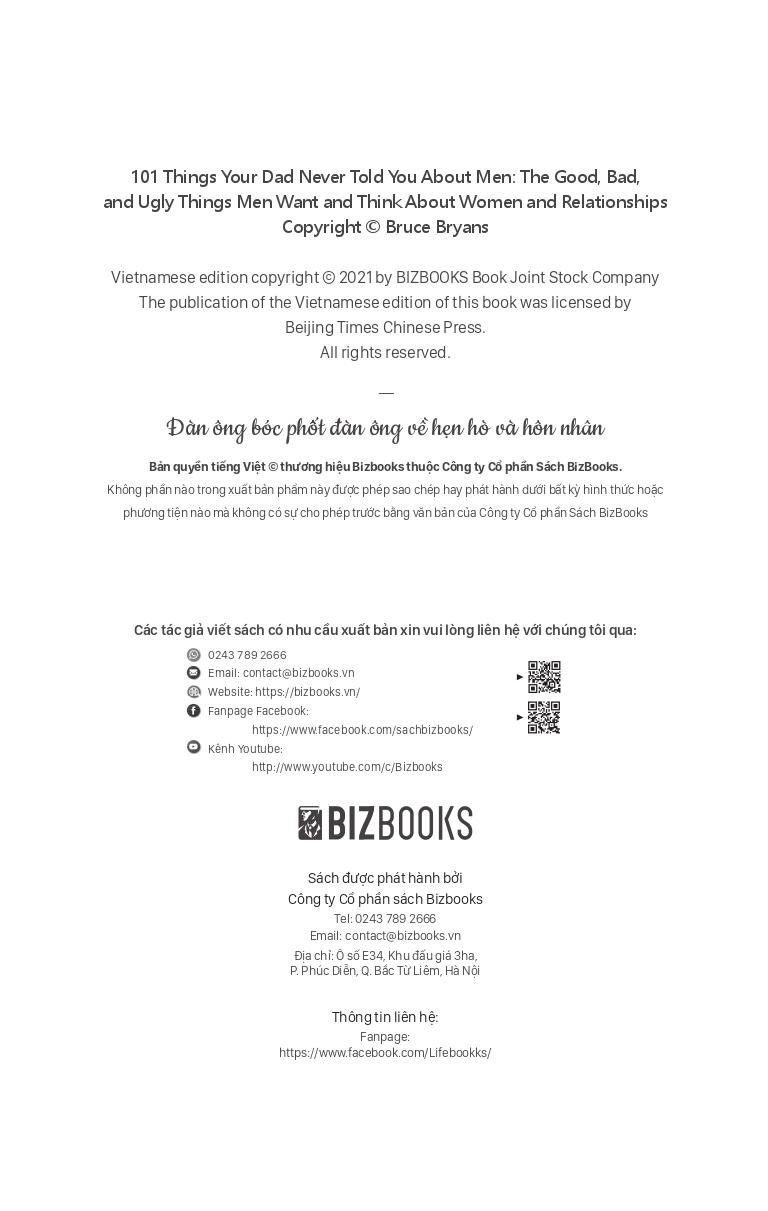 Nhưng thay vì suy nghĩ quá nhiều, hãy học cách nắm bắt tâm lý đàn ông để thấu hiểu và thông cảm cho họ khi bạn đã sẵn sàng bước lên hành trình “Đàn ông bóc phốt đàn ông về hẹn hò và hôn nhân” của công ty sách Bizbooks. Cuốn sách ra đời không chỉ giúp phụ nữ thấu hiểu bất kỳ người đàn ông nào, mà còn khiến người đàn ông trưởng thành nhận ra rằng Hạnh phúc và thành công thực sự của anh ấy trong cuộc sống thực chất gắn liền với việc tìm được người phụ nữ phù hợp và yêu cô ấy bằng tất cả tình yêu của anh ấy.