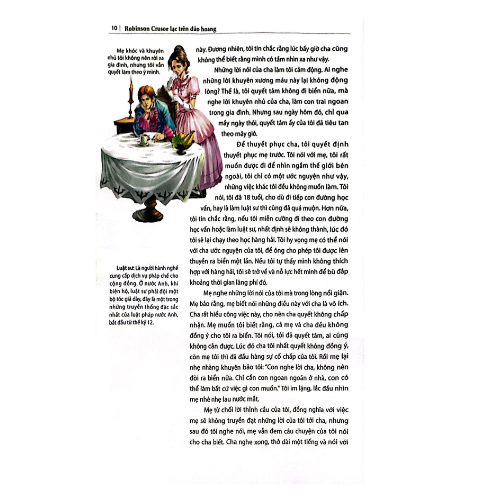 Robinson Crusoe lạc trên hoang đảo là một trong những câu chuyện thuộc tủ sách văn học kinh điển Thế Giới. Tác giả Daniel Defoe đã dùng ngòi bút của chủ nghĩa hiện thực để kể về câu chuyện chàng thủy thủ Robinson bị đắm tàu, lưu lạc đến đảo hoang và trải qua một cuộc sống rất gian khổ trong sự cô đơn; nhưng bằng nghị lực và lòng quyết tâm của mình Robinson đã trở về được với quê hương của mình.