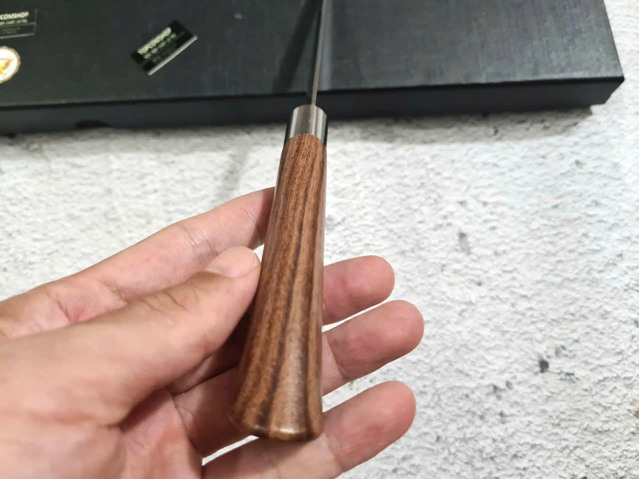 100% CAM KẾT PHÂN PHỐI SẢN PHẨM CHÍNH HÃNG THÔNG TIN CHI TIẾT SẢN PHẨM Dao chặt cán gỗ, lưỡi thép : ️ Mã Sp: SK-V16 ️ Chiều dài lưỡi: 16.5cm ️ Dày lưỡi:
