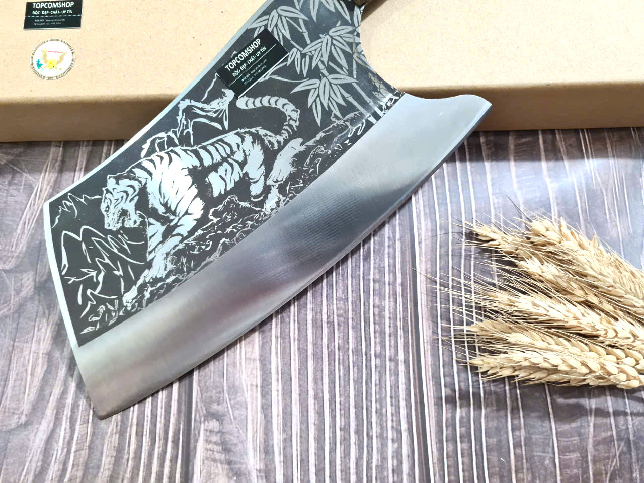 #- Chức năng: Chặt xương ống, chân giò,xương bò - Kích thước: Lưỡi: 24cm, cán: 12cm, rộng: 9,5cm, dầy: 4ly,trọng lượng: 800g