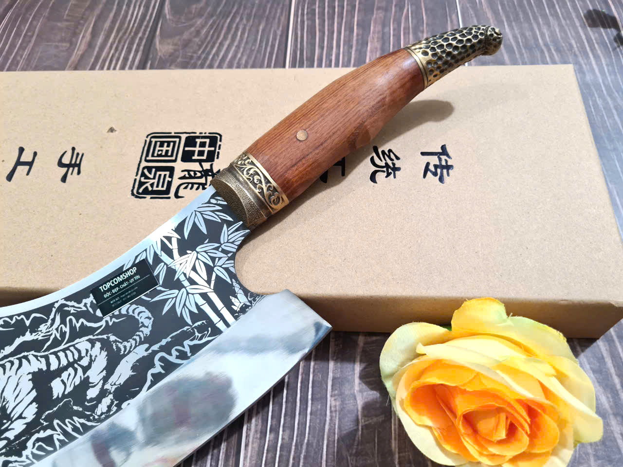 Dao Phúc Sen - Dao chặt xương 5ly - Chất liệu: 100% thép nhíp ô tô được lựa chọn và kiểm duyệt kỹ càng. - Chất liệu cán: gỗ cẩm chỉ núi - Kích thước:
