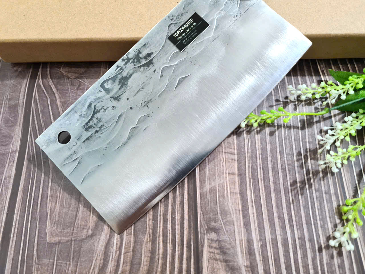 Dao thái bản vuông bếp Hoa thép N690 Bohler không rỉ - Vuadaobep.com - 0967866681